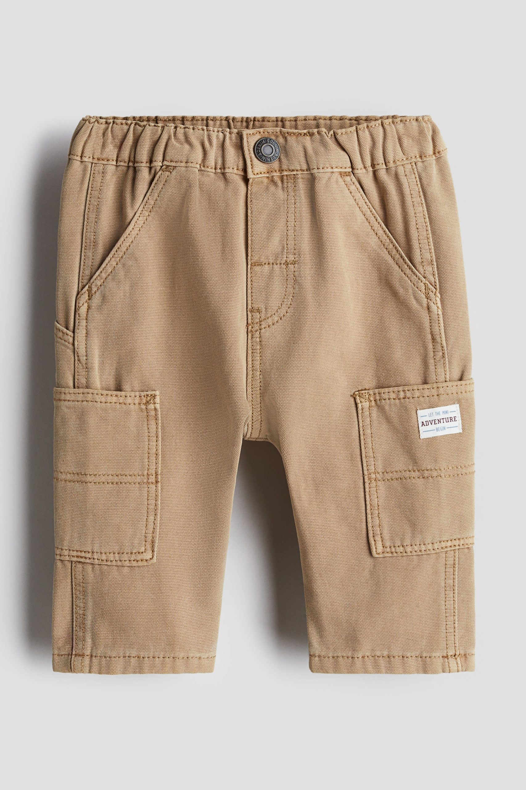 Jeans van zacht katoenen denim met verstelbaar elastiek in de taille en een fake gulp met drukknoop. Het model heeft fake zakken voor, een opgestikte zak op de pijpen en achterzakken.