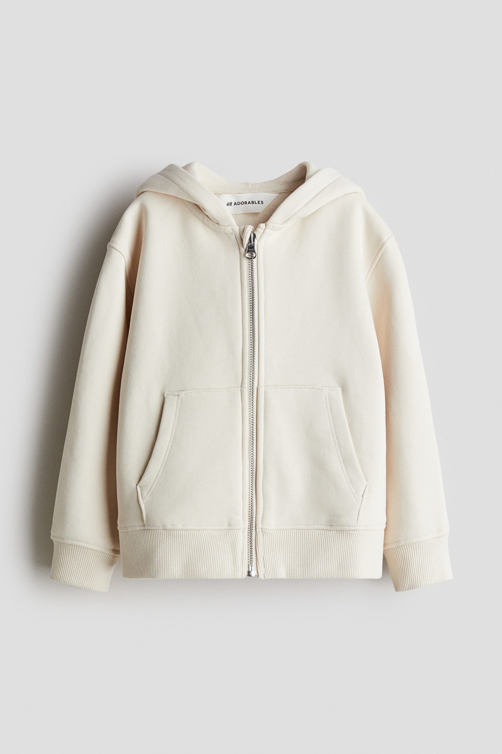 H&M Adorables. Een vest van zachte joggingstof gemaakt van hoogwaardig katoen. Het model heeft een gevoerde capuchon, een ritssluiting en kangoeroezakken voor, verlaagde schoudernaden en een geribde boord aan de onderkant en onder aan de mouwen. H&M Adorables is een met zorg samengestelde collectie van mooie, hoogwaardige items met een tijdloze uitstraling.