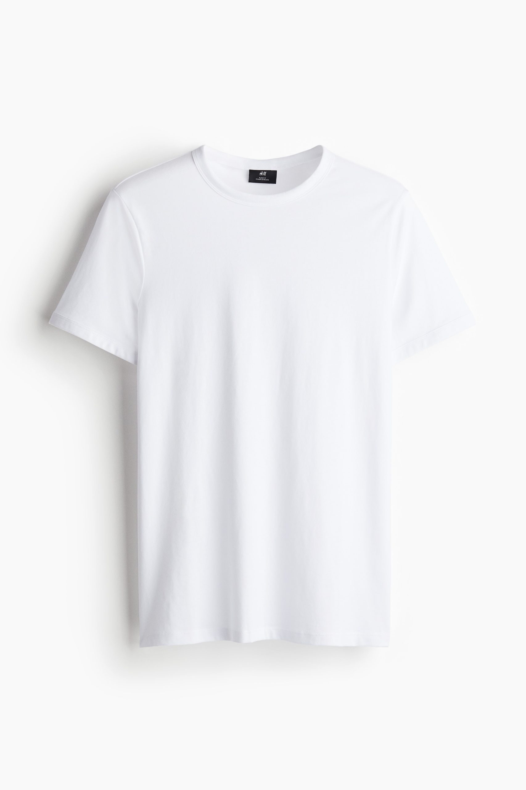 Een nauwsluitend T-shirt van katoenen tricot met een relaxte pasvorm. Het shirt heeft een ronde halsopening met een geribd boordje, licht verlaagde schoudernaden en een rechte belijning aan de onderkant.