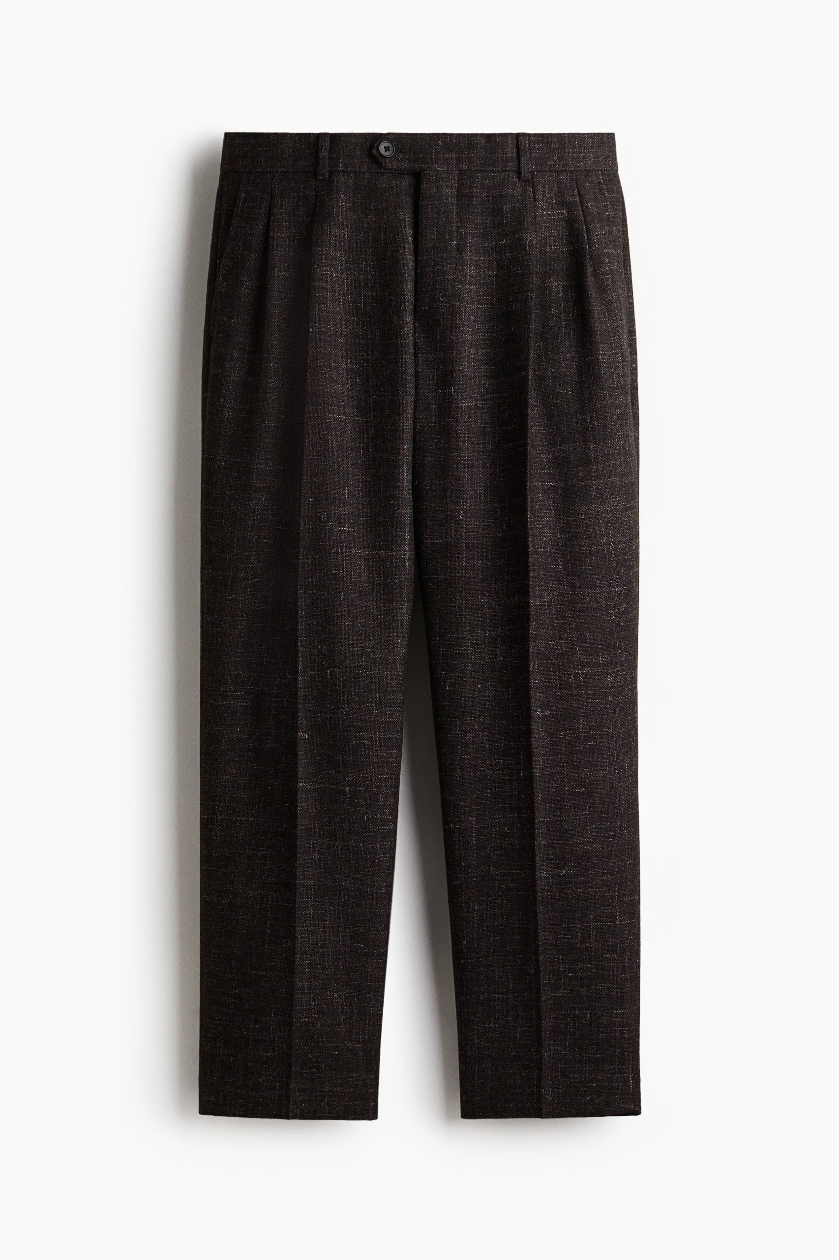 Een pantalon van zachte, geweven wolmix met persvouwen voor en achter. Het model heeft een verlengde broekband met een knoop en haak-en-oogsluiting, een gulp met ritssluiting, steekzakken en ingezette achterzakken met een knoop. Regular Fit voor een comfortabele pasvorm en een klassiek silhouet.