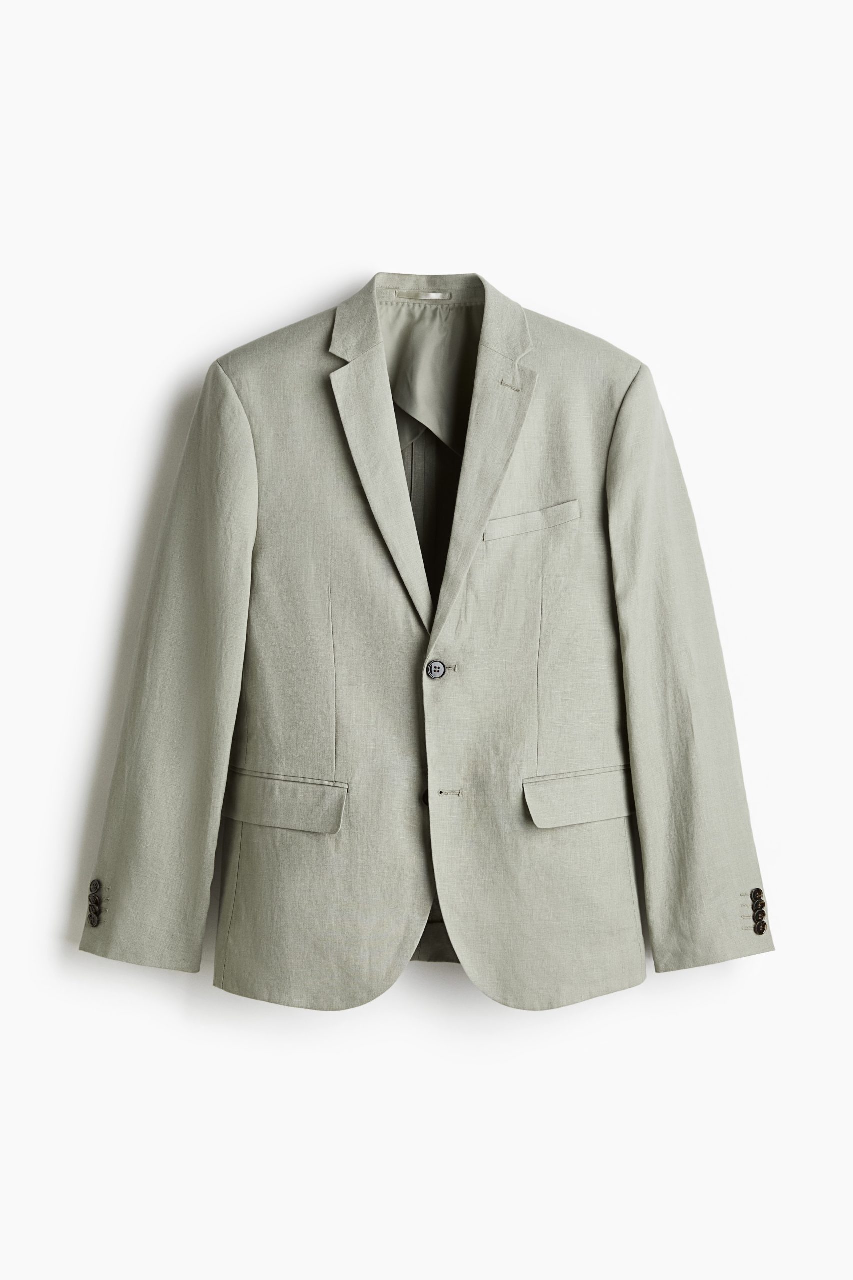 Een single-breasted colbert van luchtig, geweven linnen met smalle revers met een decoratief knoopsgat, een borstzak, voorzakken met een klep en twee binnenzakken. Het model heeft een tweeknoopssluiting voor, decoratieve knopen onder aan de mouwen en een dubbele split achter. Slim Fit voor een aansluitende pasvorm die de contouren van je lichaam accentueert. Gevoerd. Linnen is een kwaliteit die ademt, zowel gestreken als gekreukt mooi is en met de tijd zachter wordt.