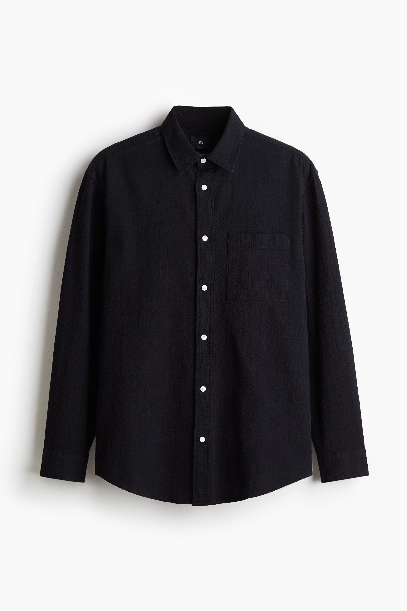 Een overhemd van katoenen seersucker met een turndown boord, een klassieke knoopsluiting, een opgestikte borstzak en een schouderpas met stolpplooi achter. Het model heeft lange mouwen met een knopenlijst en een manchet met verstelbare knoopsluiting. Afgerond aan de onderkant. Loose Fit voor een ruim maar niet oversized silhouet.