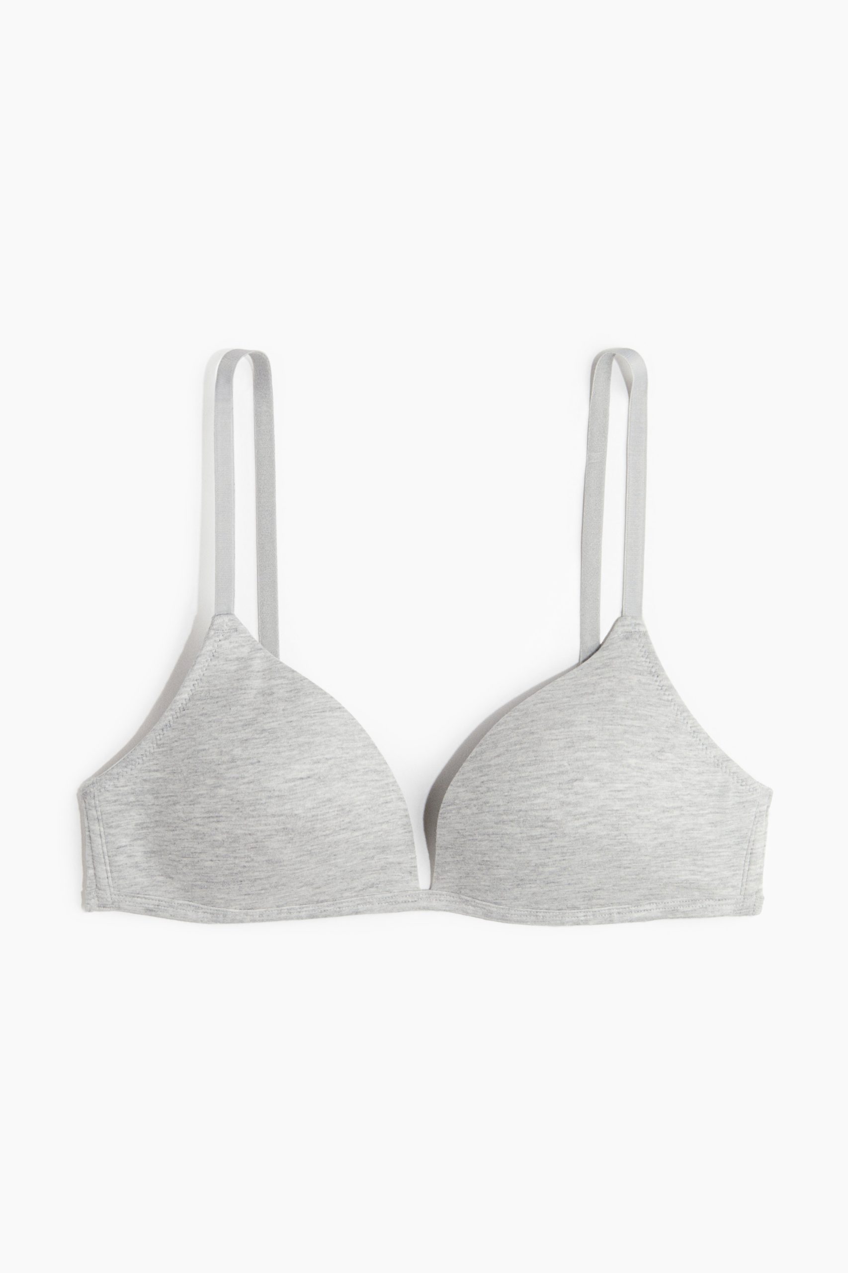Een beugelloze bh van katoenen tricot met padded cups die de borsten vorm geven en goede ondersteuning bieden. Het model heeft verstelbare schouderbandjes en een haak-en-oogsluiting achter.