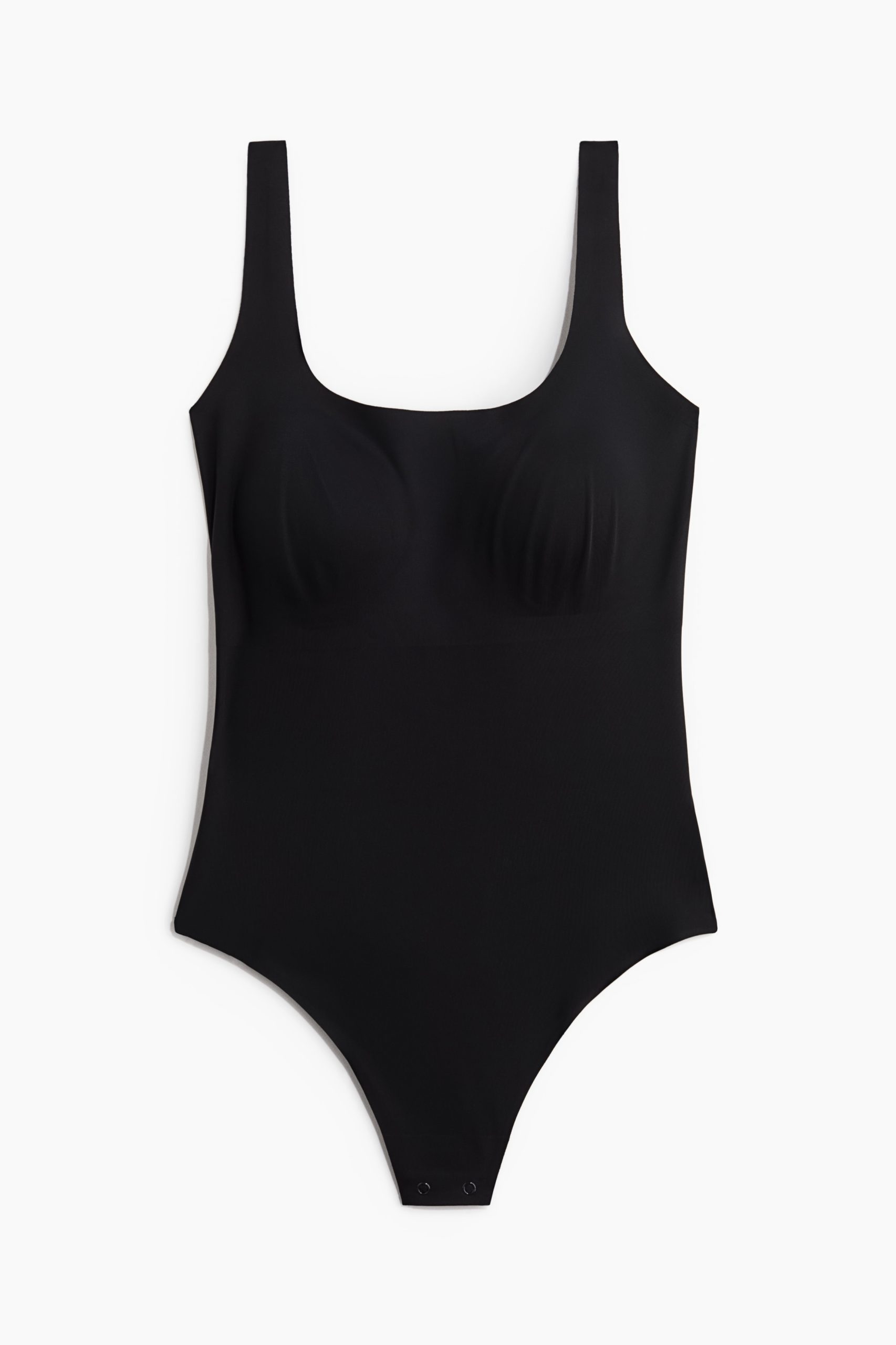 Een push-up body van microvezel met een licht shaping effect op de taille. Het model heeft verstelbare schouderbandjes en gevoerde, voorgevormde cups met uitneembare vulling die de borsten vorm geven en goede ondersteuning bieden. Gevoerd kruis met een blinde drukknoopsluiting en een iets hoger uitgesneden belijning bij het zitvlak. Ontworpen met bonded randen voor een naadloos, comfortabel gevoel en minimale zichtbaarheid onder kleding.