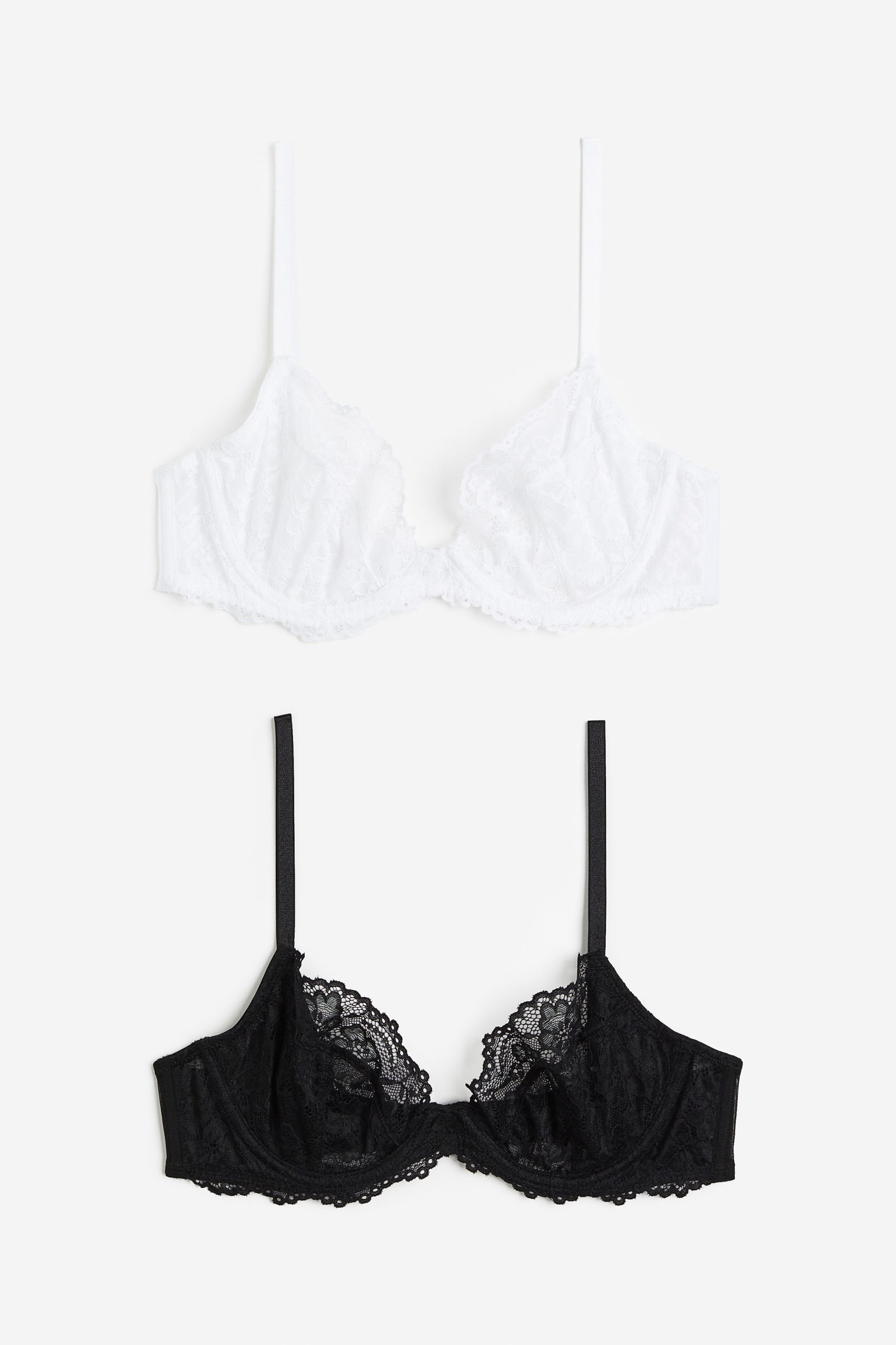 Beugel-bh’s van kant met verstelbare schouderbandjes en een haak-en-oogsluiting achter. Het model heeft met mesh gevoerde cups zonder padding die de borsten een natuurlijke vorm geven en lichte ondersteuning bieden.
