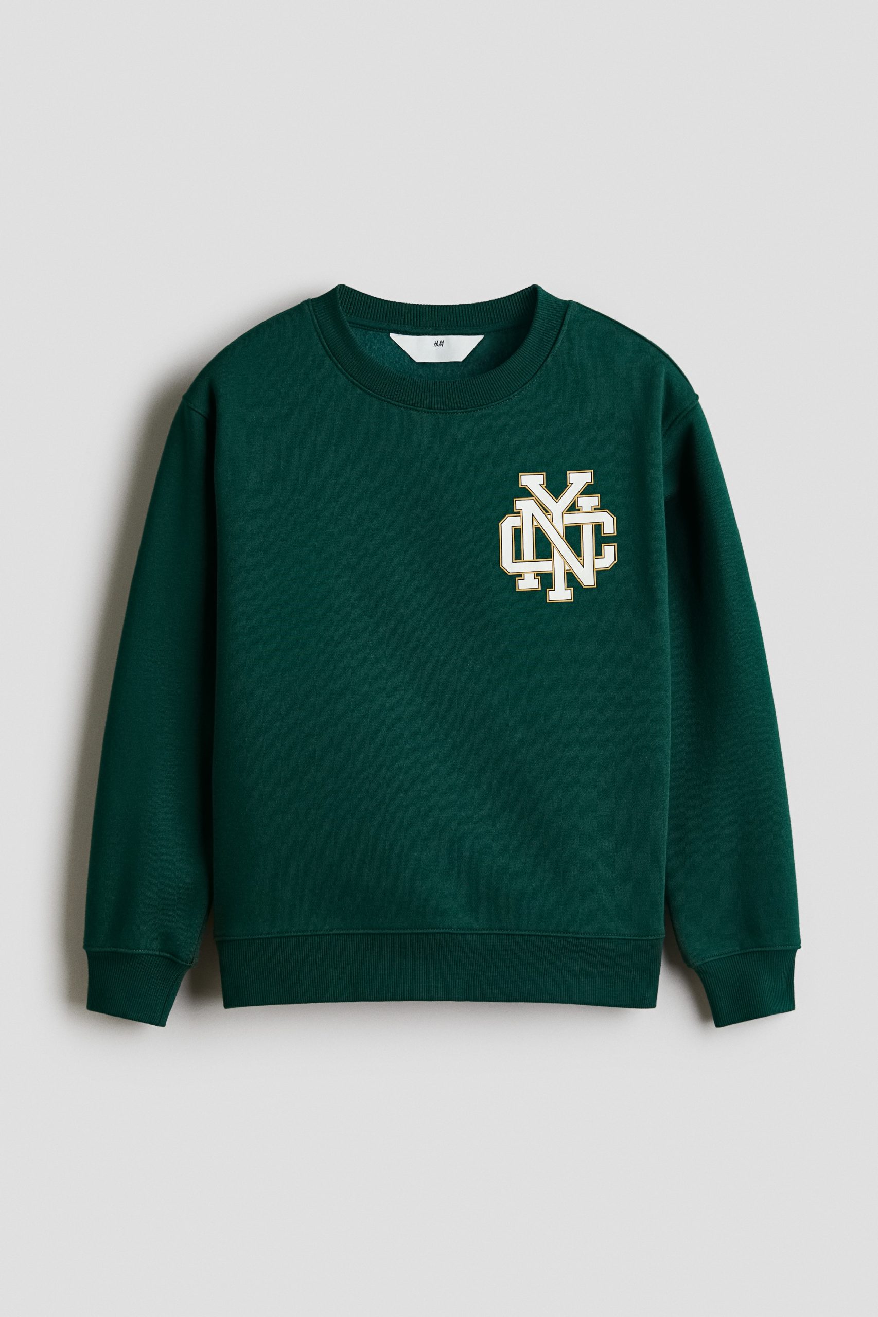 Een sweater van joggingstof met geprinte motieven en een zachte, geruwde binnenkant. Het model heeft een ronde halsopening met een geribde boord, verlaagde schoudernaden en lange mouwen. Geribde boord aan de onderkant en onder aan de mouwen.