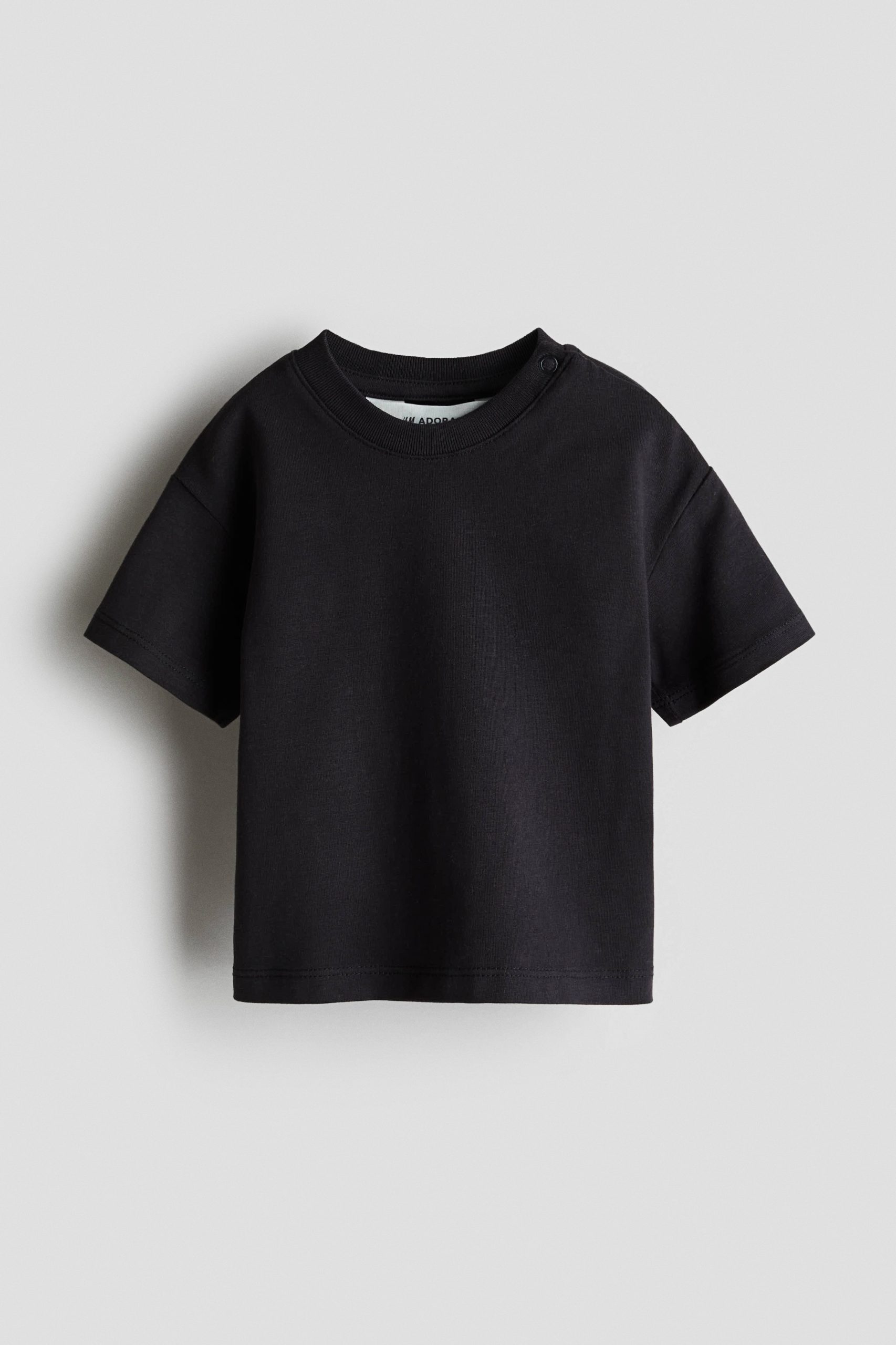 H&M Adorables. Een T-shirt van superzacht tricot gemaakt van hoogwaardig pimakatoen met een ruime pasvorm. Het model heeft een ronde hals met een geribd boordje en een drukknoop aanéén zijkant (niet in maat 92-104), verlaagde schoudernaden en korte mouwen. Ons katoenen tricot is van dikkere, duurzamere kwaliteit met een hoog gewicht per m2, die comfortabel in het dragen is. H&M Adorables is een met zorg samengestelde collectie van mooie, hoogwaardige items met een tijdloze uitstraling.