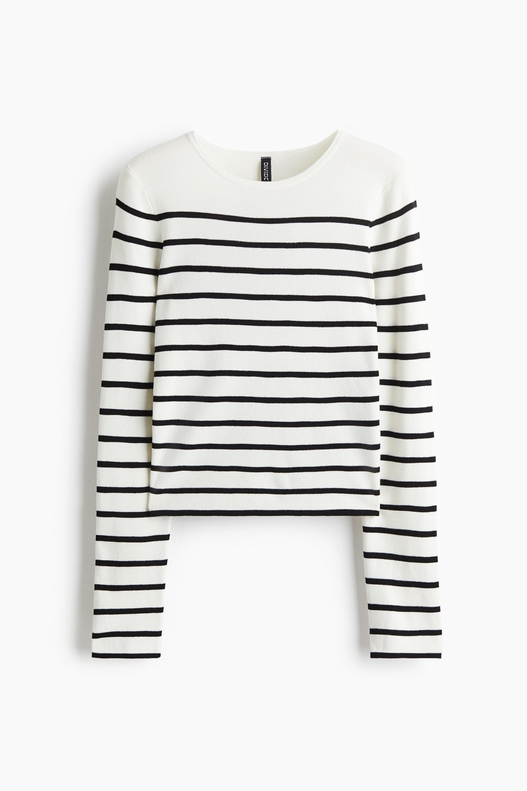 Een korte, gebreide trui van zachte viscosemix met een smalle pasvorm, een ronde hals, lange mouwen en een rechte belijning aan de onderkant.