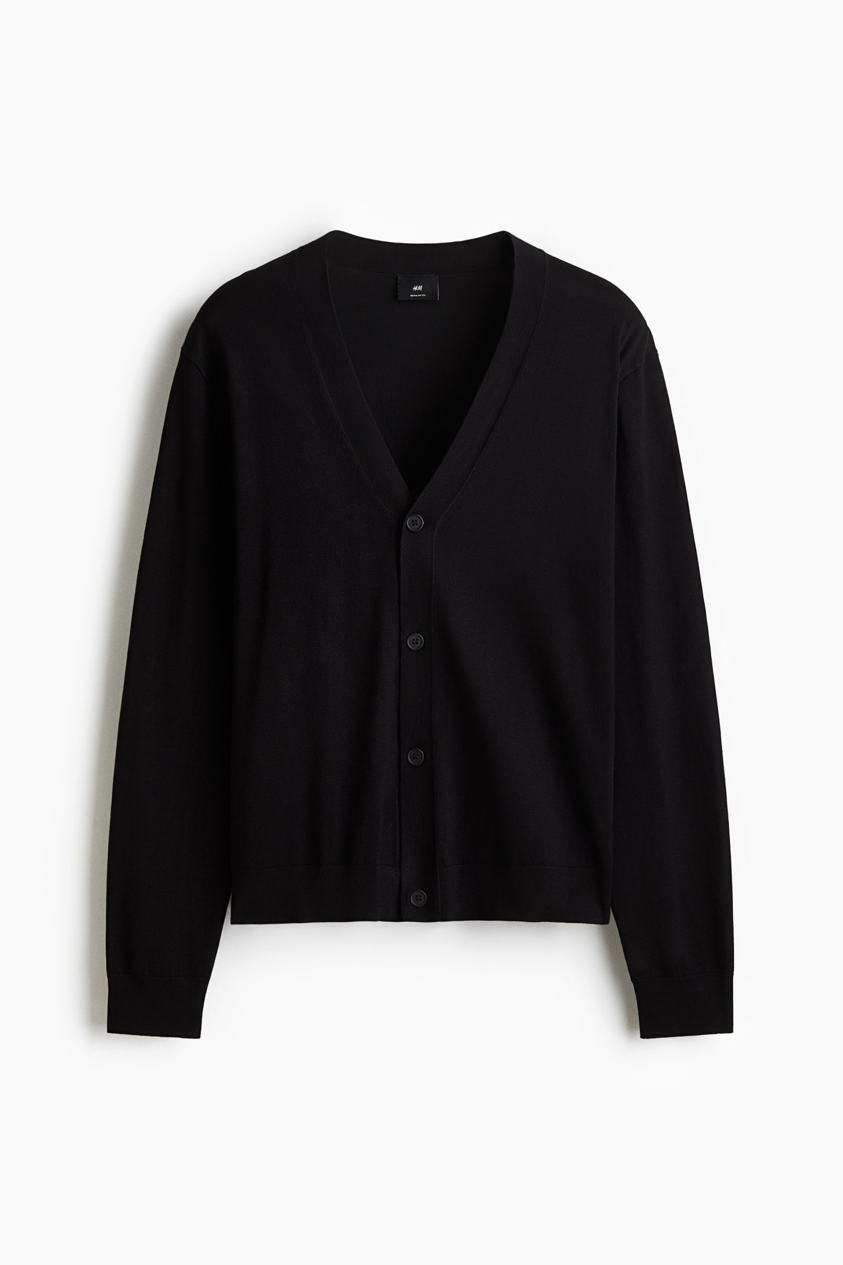 Een fijngebreid vest van zachte wol met een V-hals, een knoopsluiting en lange mouwen. Regular Fit voor een comfortabele pasvorm en een klassiek silhouet.