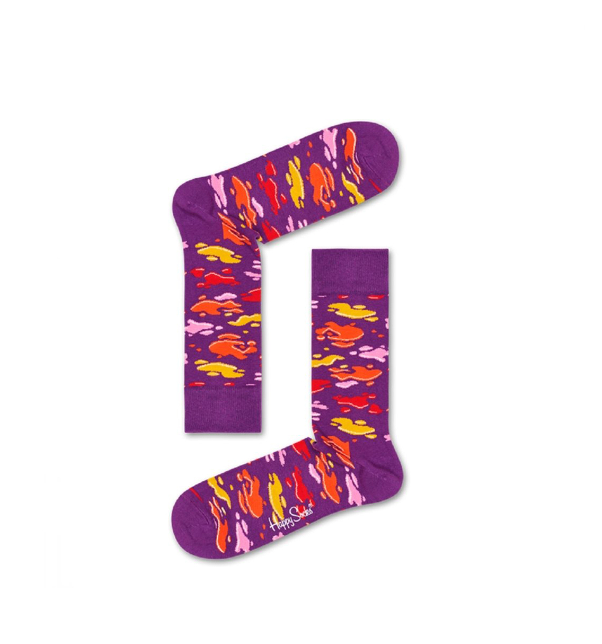 Paars gekleurde sokken van het merk Happy Socks. Deze sokken bevatten een print van fel gekleurde verfvlekken rood, geel en oranje. Eigenschappen: SKU: 15310-19-10606 Merk: HAPPY SOCKS Hoofdkleur: Multi Materiaal: Textiel Binnenvoering: Textiel Breedte: Normaal Uitneembare zool: Nee Amigo is officieel verkooppunt voor producten van HAPPY SOCKS en helpt je graag verder. Indien je je PUD01-5300 Puddle bestelt voor 16:00, dan wordt je bestelling, indien op voorraad, nog op dezelfde dag verzonden!