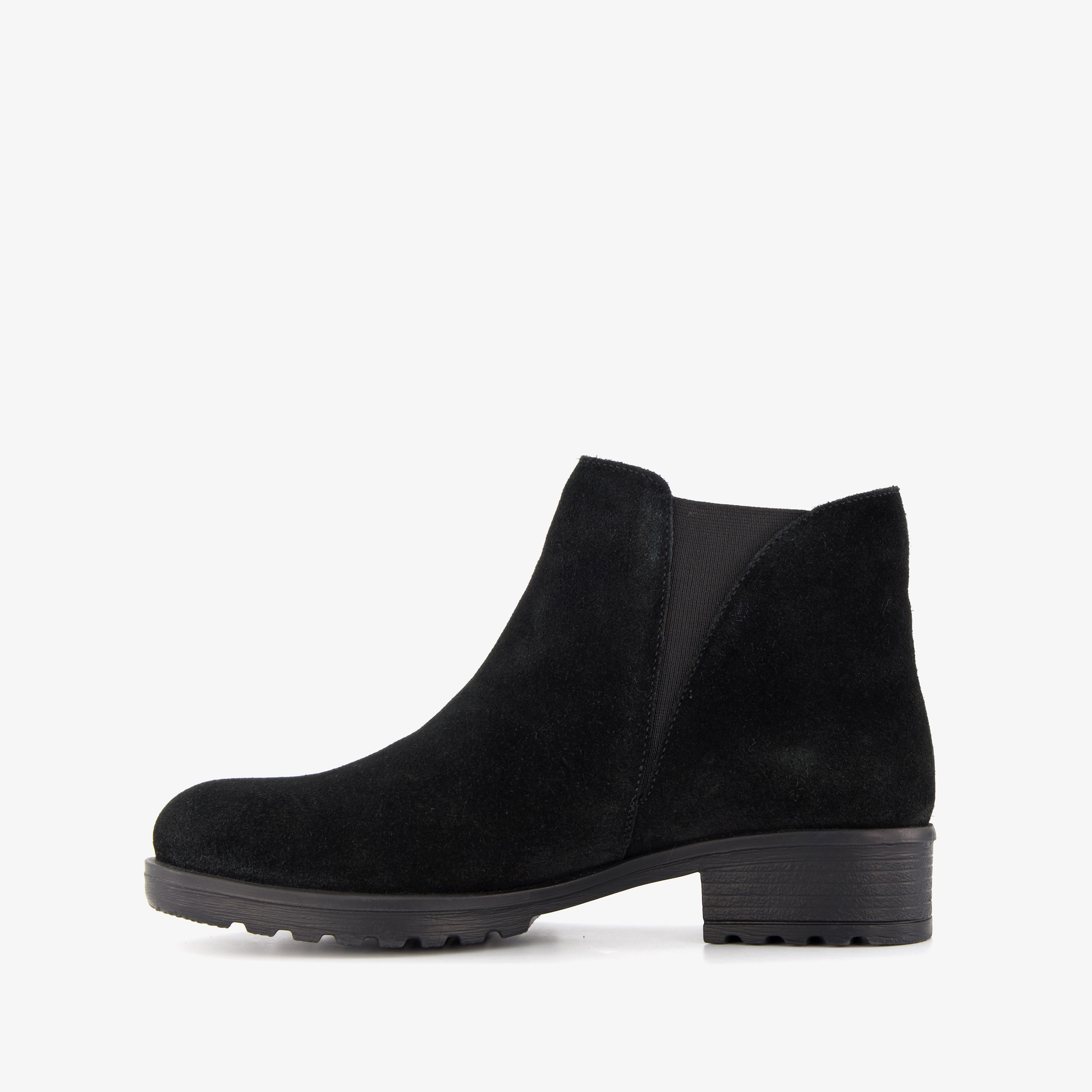 Harper suede dames enkellaarsjes lage hak zwart