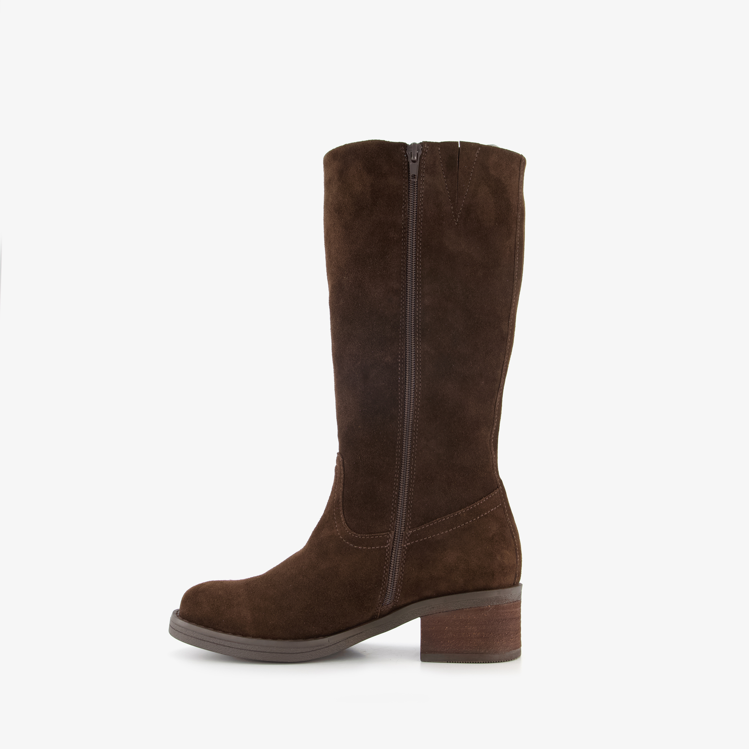 Dames laarzen in de kleur chocolate. De laarzen zijn van suede. Aan de binnenkant zit een rits zodat de laars gemakkelijk aan en uit kan. De zool is niet uitneembaar. De hak is circa 4cm hoog e de schachthoogte is 31cm.