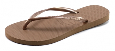 Beige slipper Slim met een licht oplopend voetbed van het slippermerk Havaianas. Stoute Schoenen heeft elk seizoen een uitgebreide collectie slippers van Havaianas. Koop jouw Havaianas slippers online bij Stoute Schoenen ©.