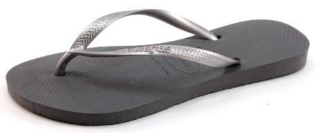 Grijze slipper Slim met een licht oplopend voetbed van het slippermerk Havaianas. Stoute Schoenen heeft elk seizoen een uitgebreide collectie slippers van Havaianas. Koop jouw Havaianas slippers online bij Stoute Schoenen ©.