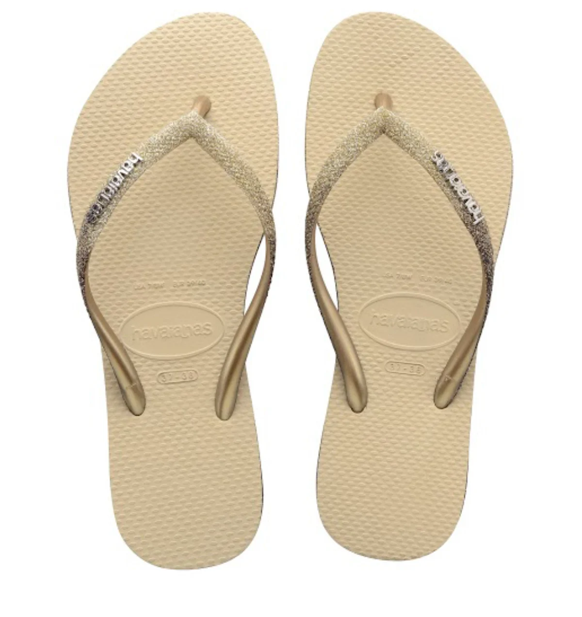 De Havaianas Slim Sparkle II in het beige. Deze sprankelende slippers met een metallic logo op de glitterband én een zool met glitterrand zijn volledig gemaakt van rubber en hebben een normale pasvorm. Comfortabel, duurzaam, lichtgewicht, hittebestendig, antislip en waterafstotend. Kortom, de slippers van het Braziliaanse merk Havaianas zijn de absolute musthaves voor de zomer! Eigenschappen: SKU: 1150-05-11597 MPN: 4146093 0154 SAND GR Merk: Havaianas Hoofdkleur: Beige Materiaal: Rubber Binnenvoering: Rubber Breedte: Normaal Uitneembare zool: Nee Amigo is officieel verkooppunt voor producten van Havaianas en helpt je graag verder. Indien je je SLIM SPARKLE II bestelt voor 16:00, dan wordt je bes