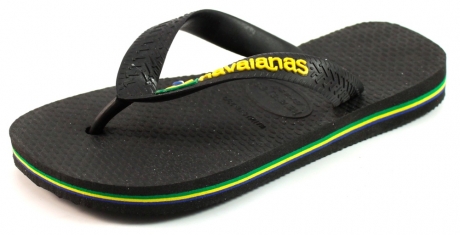 Zwarte slipper Brasil Logo van het slippermerk Havaianas. Stoute Schoenen heeft elk seizoen een uitgebreide collectie slippers van Havaianas. Koop jouw Havaianas slippers online bij Stoute Schoenen ©.
