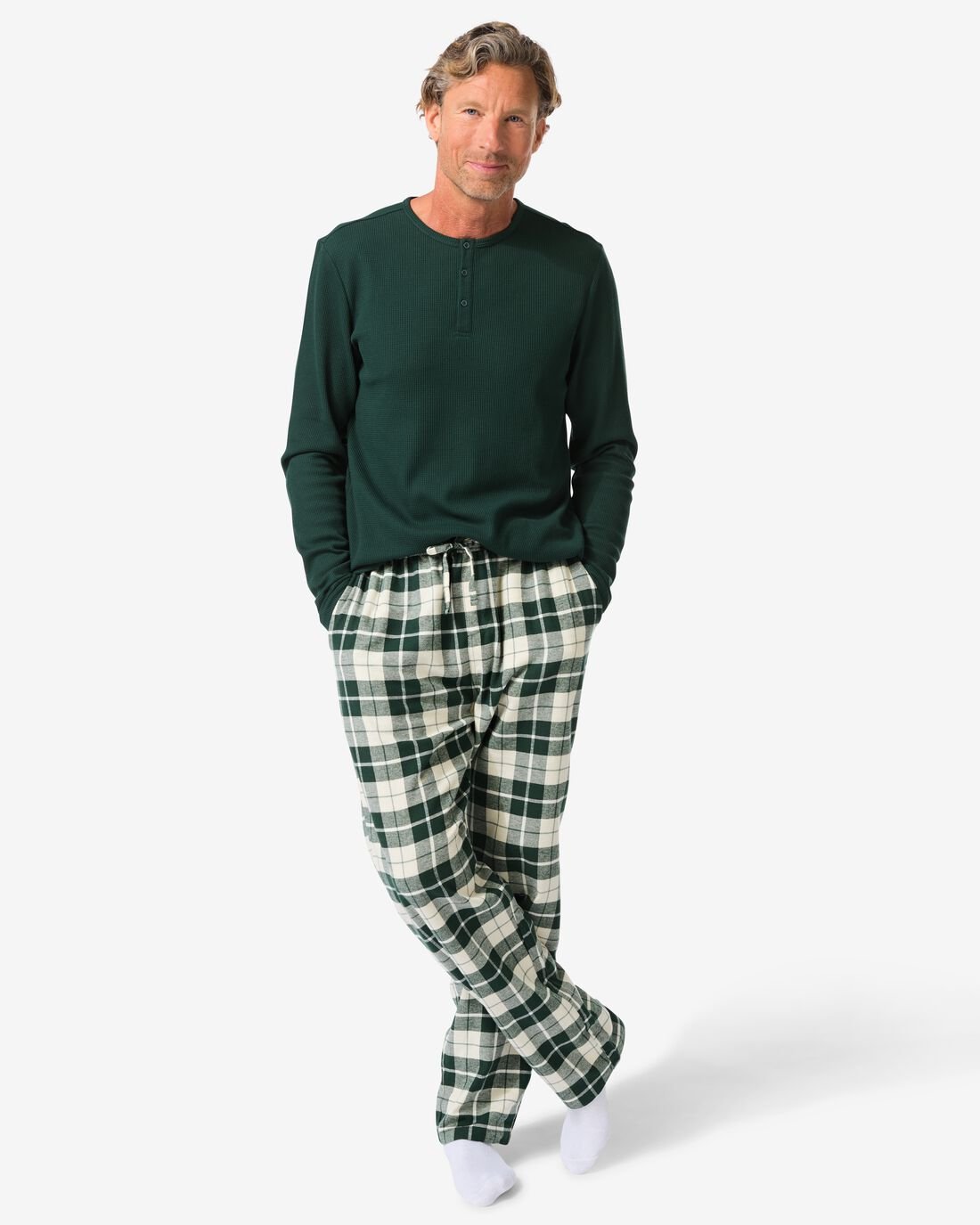 HEMA HEMA Herenpyjama Wafel Flanel Groen (groen)