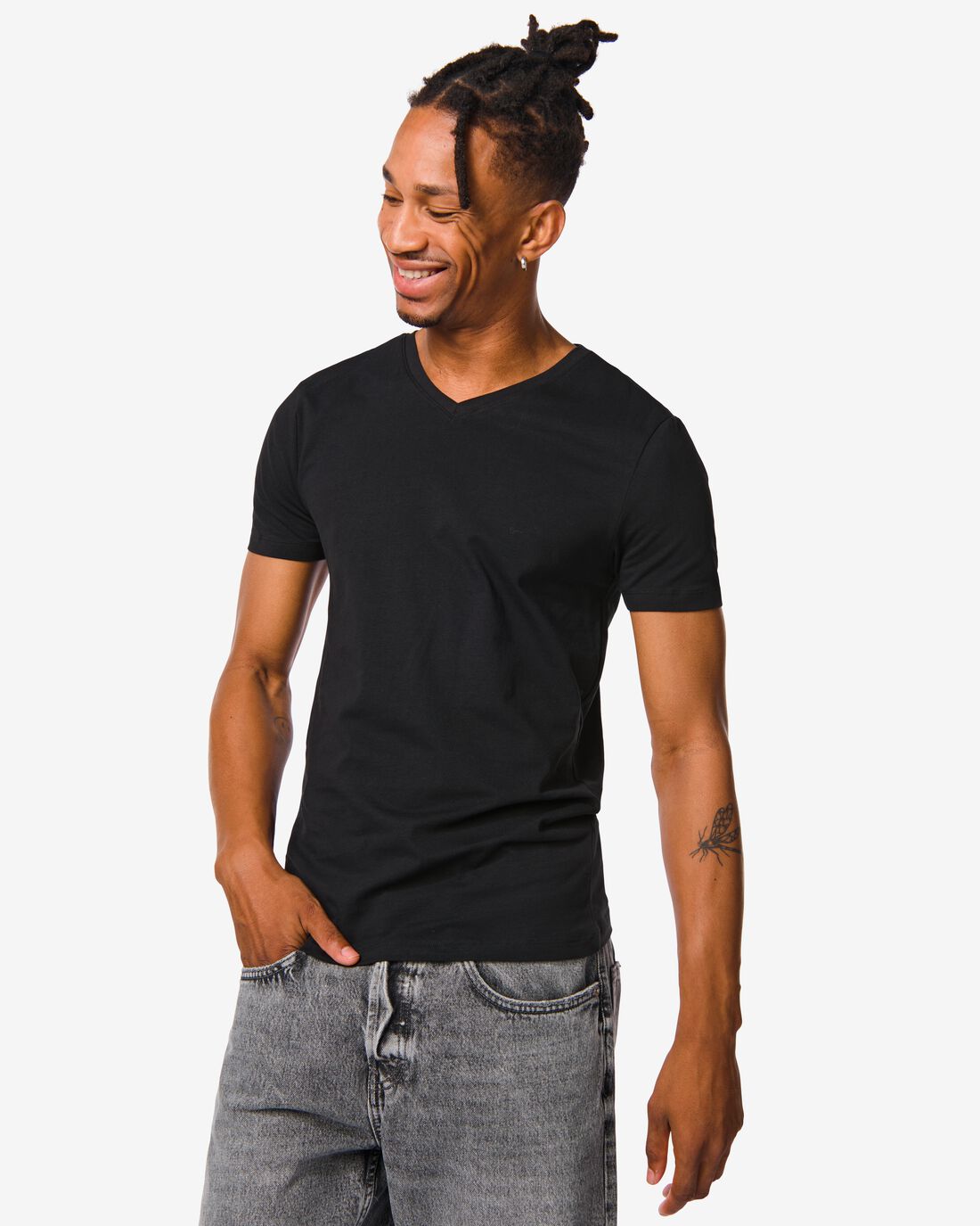HEMA Heren T-shirt Slim Fit V-hals Zwart (zwart) nu voor slechts €10.99,-. Een zwart heren t-shirt met een V-hals en korte mouwen. Het extra lange shirt heeft een slim fit model. Het is gemaakt van biologisch katoen met stretch, dat zowel in de lengte als in de breedte rekt. Daardoor zit het shirt mooi om het lichaam, is het vochtabsorberend en draagt het heel comfortabel. Door de speciale finish blijft het als nieuw, ook na vaak wassen. De producteigenschappen: materiaal samenstelling: 95% biologisch katoen / 5% elastaan. dessin: uni, . wasvoorschriften: machinewasbaar tot 40°C, wassen met gelijke kleuren, binnenstebuiten wassen en strijken. droogvoorschriften: geschikt voor drogen op een hoge temperatuur. strijkvoorschriften: geschikt voor warm strijken. bleek instructie: niet bleken. mouwlengte: korte mouw. halslijn: v-hals. pasvorm: slim fit, . stretch: met stretch. artikel nummer: 1000009580.