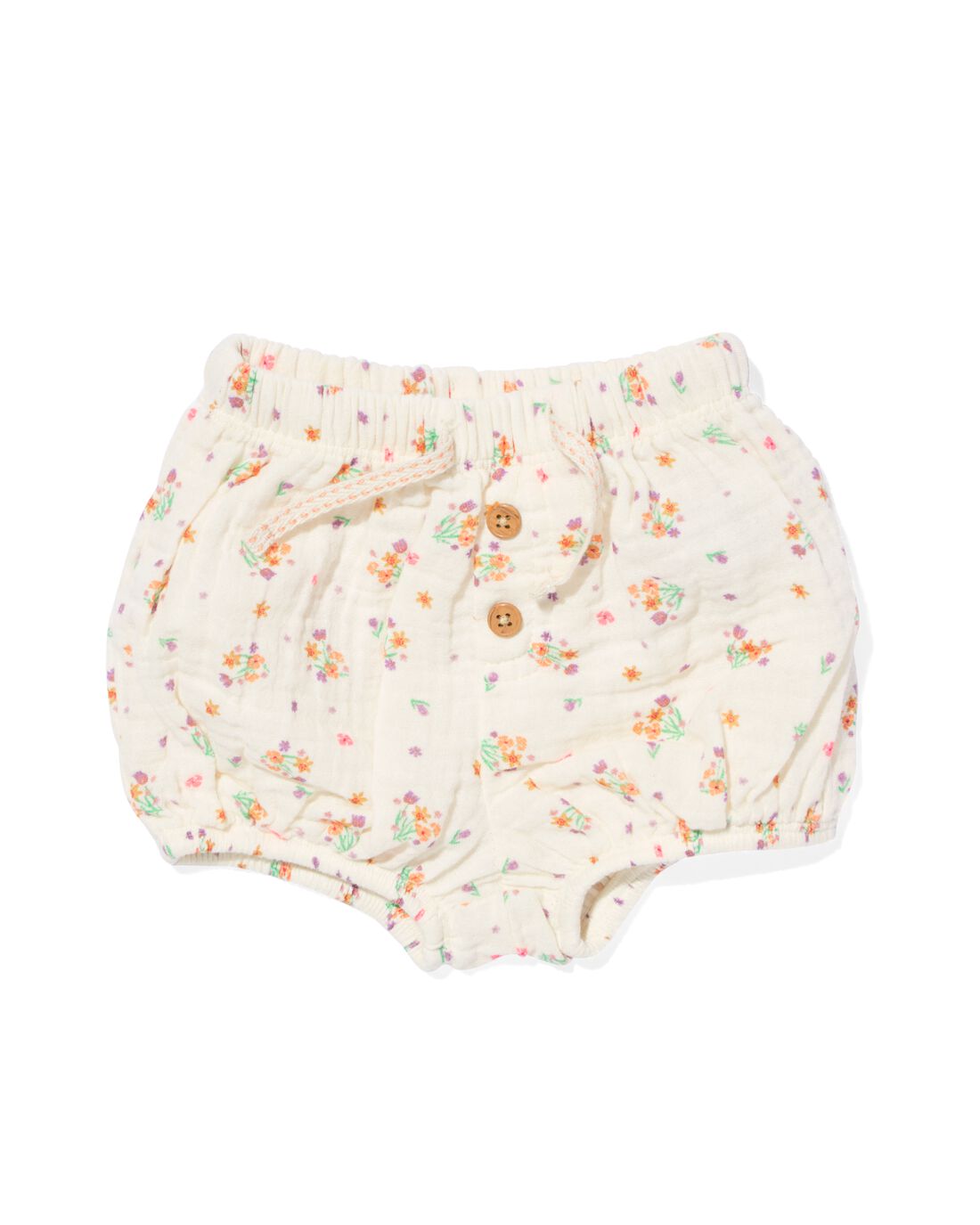 Een newborn baby pofbroekje, gemaakt van mousseline. Het broekje heeft elastiek bij de beenopeningen en in de taille. Hierdoor sluit het goed aan en blijft het beter zitten. Het is gemaakt van luchtig en elastisch mousseline katoen.