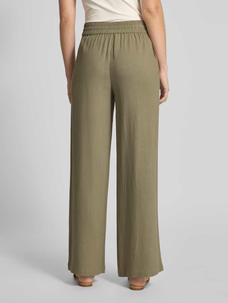 High waist damesbroek van SELECTED FEMME;Mix van viscose en linnen;Brede pijpen;Model ‘VIVA-GULIA’;Elastische band;Tunnelkoord;Bandwijdte bij maat 36: 37 cm;Binnenbeenlengte bij maat 36: 80 cm