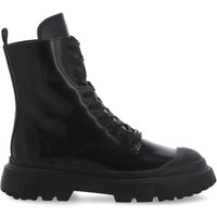 Introducing the Boots Black from HOGAN’s Autumn/Winter 2022 collection, crafted from 100% premium calfskin sourced from Spain. These high-end boots boast a sleek black design, featuring a high-top silhouette with a lace-up front for an elegant yet edgy look. The chunky sole provides a contemporary touch, while the minimalist design and subtle stitching offer a polished finish. A convenient pull tab ensures easy wearability, making these boots a versatile addition to any wardrobe.