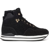 Verhoog je schoenenmode met deze stijlvolle Hogan sneakers. Gemaakt van zwart suède en een vleugje lurex voor extra stijl. Beschikt over een duurzame rubberen zool en een verwijderbare anatomische inlegzool voor ultiem comfort. Perfect voor elke gelegenheid en een must-have voor elke modebewuste garderobe. Haal de jouwe nu!