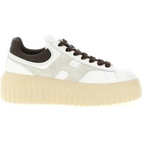 De ‘H-Stripes’ sneakers van Hogan exemplificeren moderne verfijning met hun premium nappa leren en suede accenten. Ontworpen voor ultiem comfort, hebben ze een vetersluiting en een rubberen platformzool met een memory foam inlegzool voor een comfortabele pasvorm. De contrasterende hak voegt een stijlvolle edge toe, waardoor deze sneakers perfect zijn voor zowel casual uitjes als sportieve activiteiten.- Merk: Hogan – Producttype: Sneakers – Materialen: 70% schapenleer, 30% kalfsleer – Maat: EU 36 (Hakken: 5.8 cm) – Oorsprong: ItaliëDe vermelde maten zijn Italiaanse maten. Voor de beste pasvorm, raadpleeg onze maattabel.