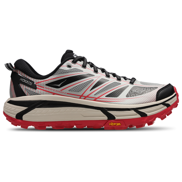 Versnel je succes! Maak je reis naar succes soepel en stijlvol met de HOKA Mafate Speed 2. Deze herwerkte sneakers zijn snel, efficiënt en altijd vooruitstrevend. Ze hebben een SpeedFrame-constructie met een diep actief voetframe voor uitstekende ondersteuning en de perfecte pasvorm. Het elastische bovenwerk is gelaagd met een monomesh vuilwerend scherm en biedt bescherming en een behaaglijk gevoel in één. In de Mafate is het Active Foot-frame dieper en is de Meta-Rocker aangepast voor soepelere overgangen. Het Vibram Mega-Grip-profiel van 5mm op de buitenzool krijpt zich zelfs in de lastigste omstandigheden vast, en diepe flexgroeven op de buitenzool zorgen ervoor dat de schoen zich aanpast aan verschillende terreinen. Focus op niets anders dan winnen met de HOKA Mafate Speed ​​2. Kenmerken van HOKA Mafate Speed 2: * Lichte, naadloze SpeedFrame-constructie * Externe monomesh vuilwerende laag op het bovenwerk * Diep actief voetframe * Externe TPU-hielkap * HOKA-raceveters *