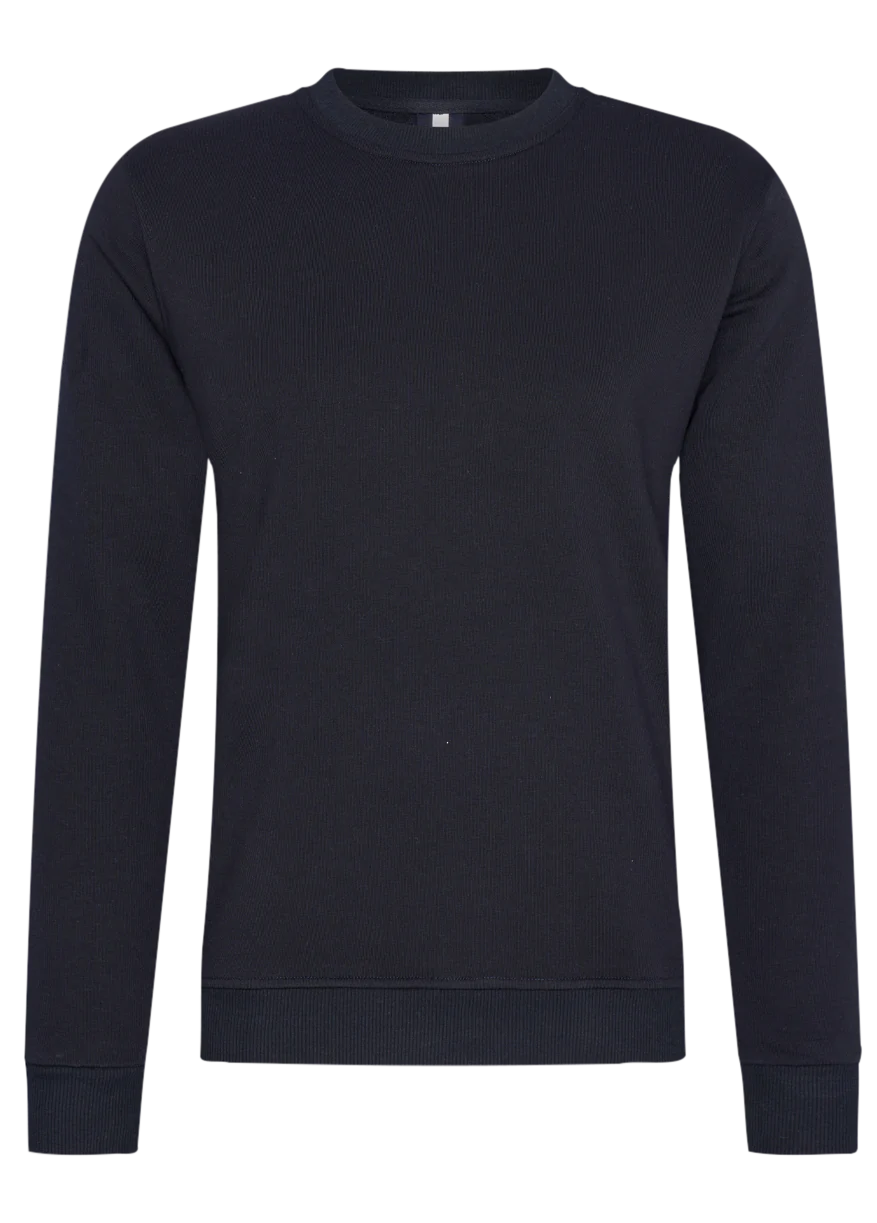 Deze navy blue sweater van Hønk bestaat voor 100% uit katoen. Hij is voorzien van een ronde hals, lange mouwen en geribde boorden. De kleur geeft de sweater een neutrale uitstraling. Hij valt mooi slank en voelt heerlijk zacht aan. De trui kan in de wasmachine op 30 graden gewassen worden. *Valt qua snit niet ruim maar als een pullover, slank.