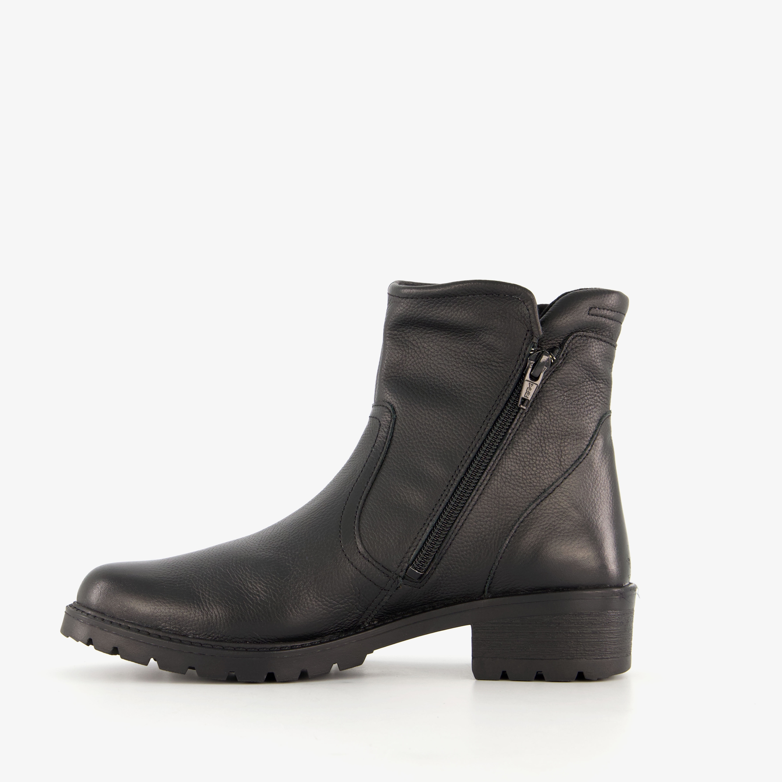 Zwarte enkellaarsjes voor dames van Hush Puppies. Het buiten- en binnenwerk zijn gemaakt van leer en de stevige zool met profiel van rubber. Voorzien van een ritssluiting aan de binnen- en buitenzijde. De laarsjes hebben een comfortabele binnenzool van textiel. Deze is uitneembaar zodat je eventueel jouw eigen zolen in de schoenen kan dragen. Schachthoogte is 13 cm en hakhoogte is 3 cm.