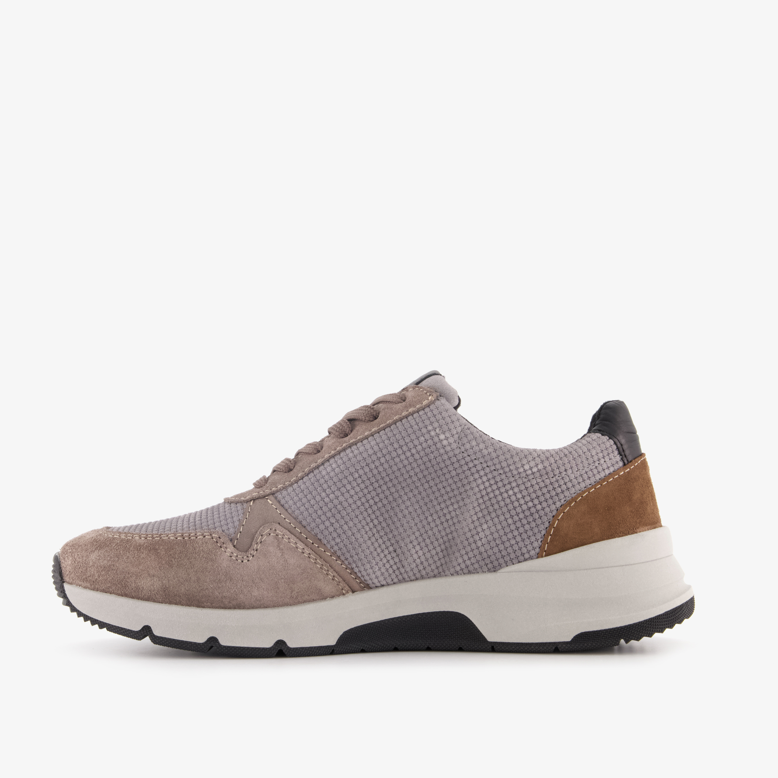 Grijze Hush Puppies sneakers voor heren. Het bovenwerk is van leer gemaakt, het binnenwerk van imitatieleer en de stevige zool met profiel is van rubber. Voorzien van een veter- en ritssluiting en een comfortabele binnenzool van leer. Deze is uitneembaar zodat je eventueel je eigen zolen in de schoenen kan dragen. De sneakers hebben beige en bruine details en een wit-zwarte buitenzool.