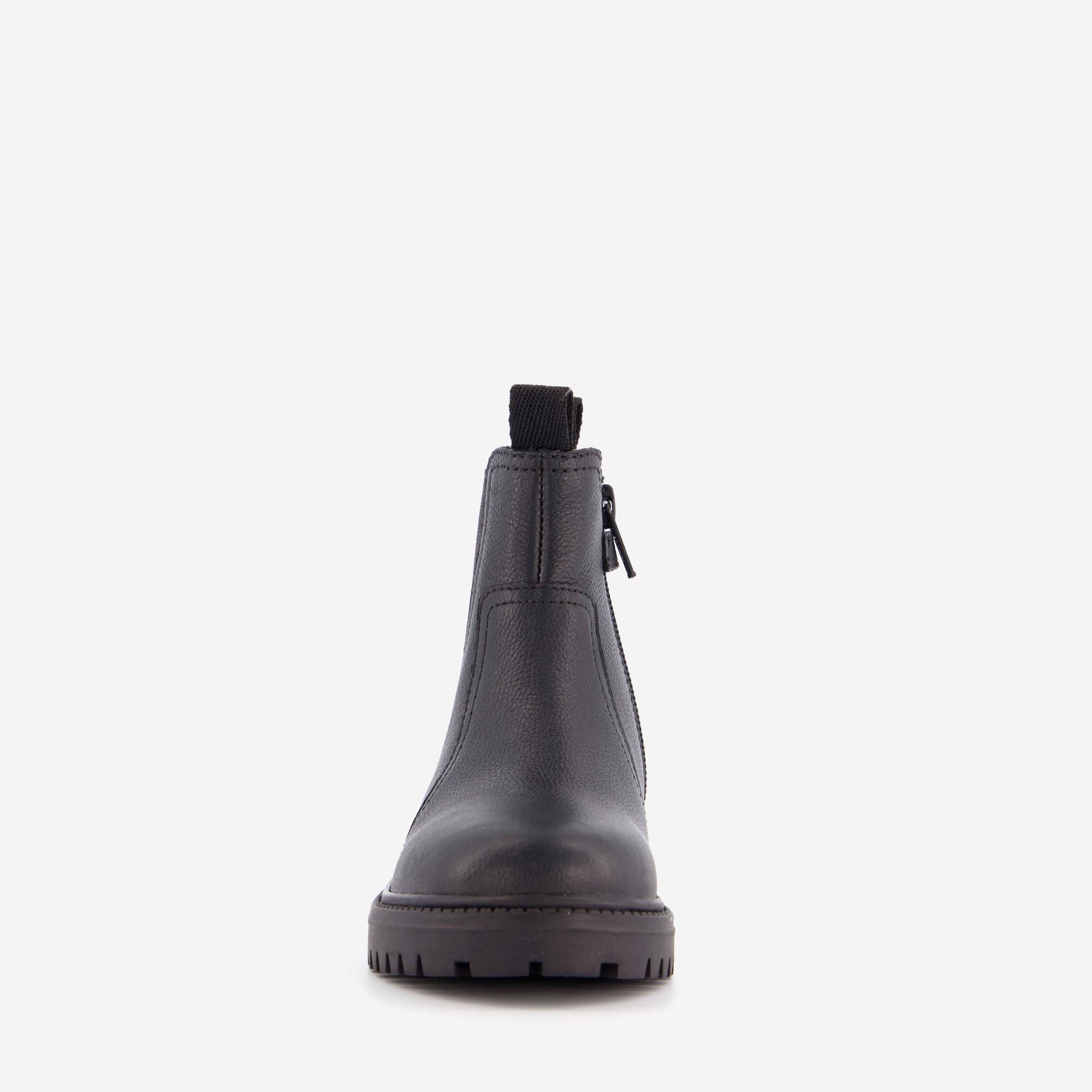 Zwarte Chelsea boots voor jongens en meiden van Hush Puppies. Gemaakt van leer, een binnenwerk van textiel en een stevige profielzool van rubber. De boots hebben een elastische inzet aan de buitenzijde, een ritssluiting met klittenbandje aan de binnenzijde en lusjes bij de instap. Het comfortabele voetbed is gemaakt van leer. Deze is niet uitneembaar. Schachthoogte is 10 cm.