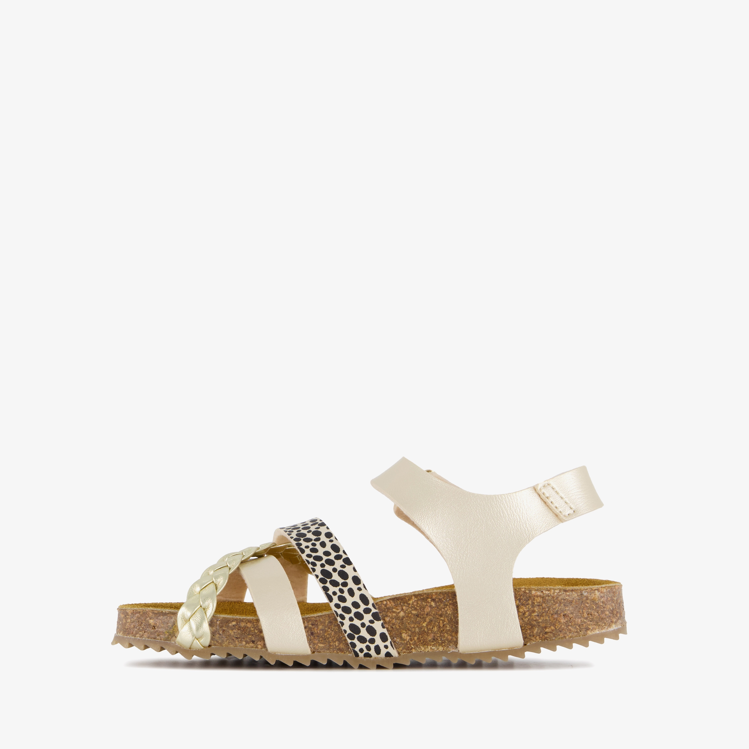 Beige meisjes bio sandalen met een panterprint detail van Hush Puppies. Gemaakt van imitatieleer met een binnenwerk van textiel en een profielzool van rubber. Voorzien van cross-overbandjes bij de tenen en een band met gespsluiting bij de enkel. Het comfortabele voetbed van leer is niet uitneembaar.