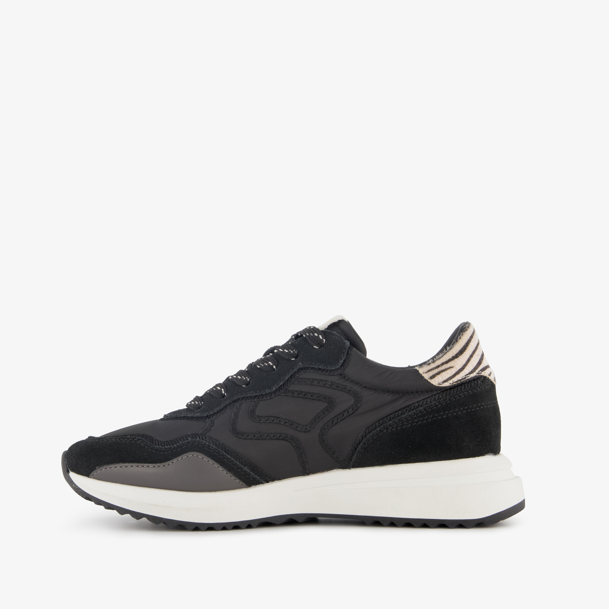 Hush Puppies suede dames sneakers met zebraprint details zwart