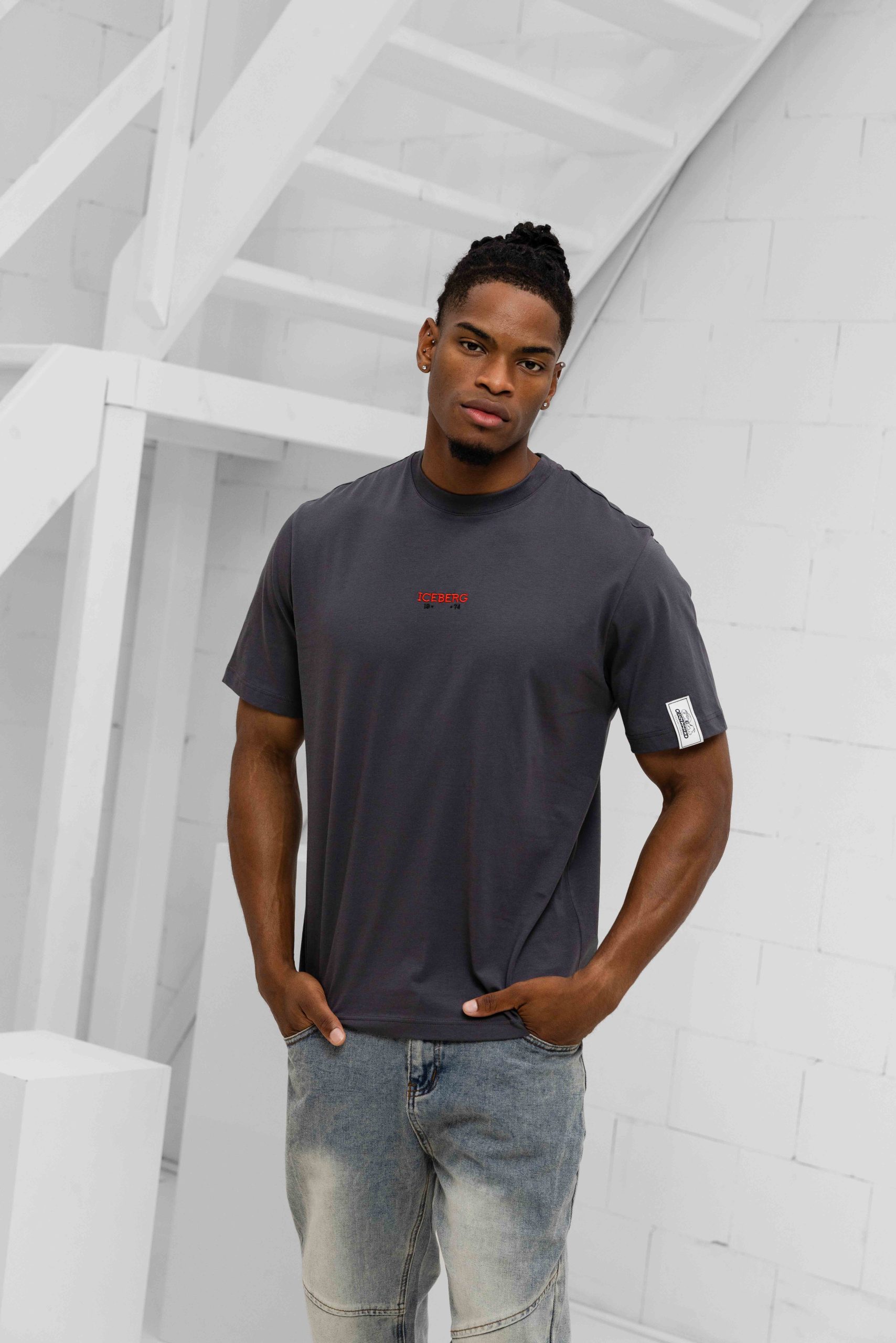 Het Iceberg 5D F025 Jersey T-Shirt voor heren in donkergrijs is een must-have item voor de lente/zomer collectie. Dit comfortabele shirt heeft een ronde hals en korte mouwen, gemaakt van 100% katoen voor een zachte en ademende pasvorm. De normale pasvorm zorgt voor een relaxte uitstraling, terwijl het effen ontwerp met subtiele logoprint een trendy touch toevoegt aan je outfit. Dit shirt heeft geen sluiting en geen zakken, waardoor het perfect is voor een casual look. Met het Iceberg logo op de borst is dit T-shirt een stijlvolle toevoeging aan je kledingkast.