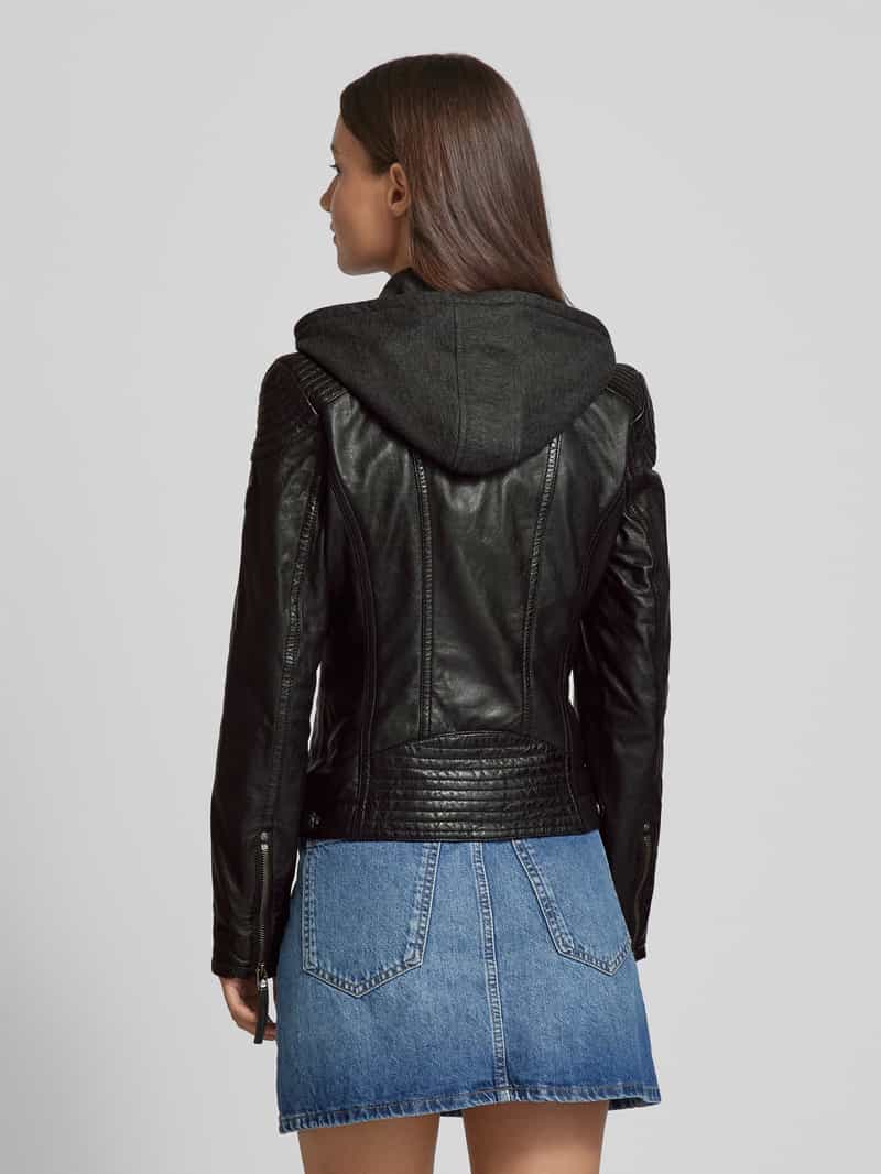 Damesjack van MAURITIUS;Getailleerd model;Model ‘Cacey’;Lamsnappa;Capuchon;Deelbare ritssluiting;Ritszakken opzij