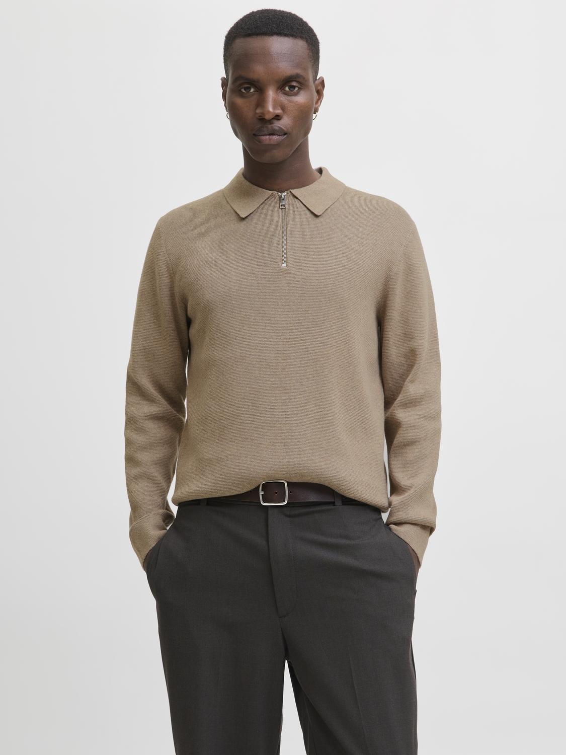 Jack – Jones Jprblamilano Stitch Knit Zip Polo Sn Trui Greige Melange