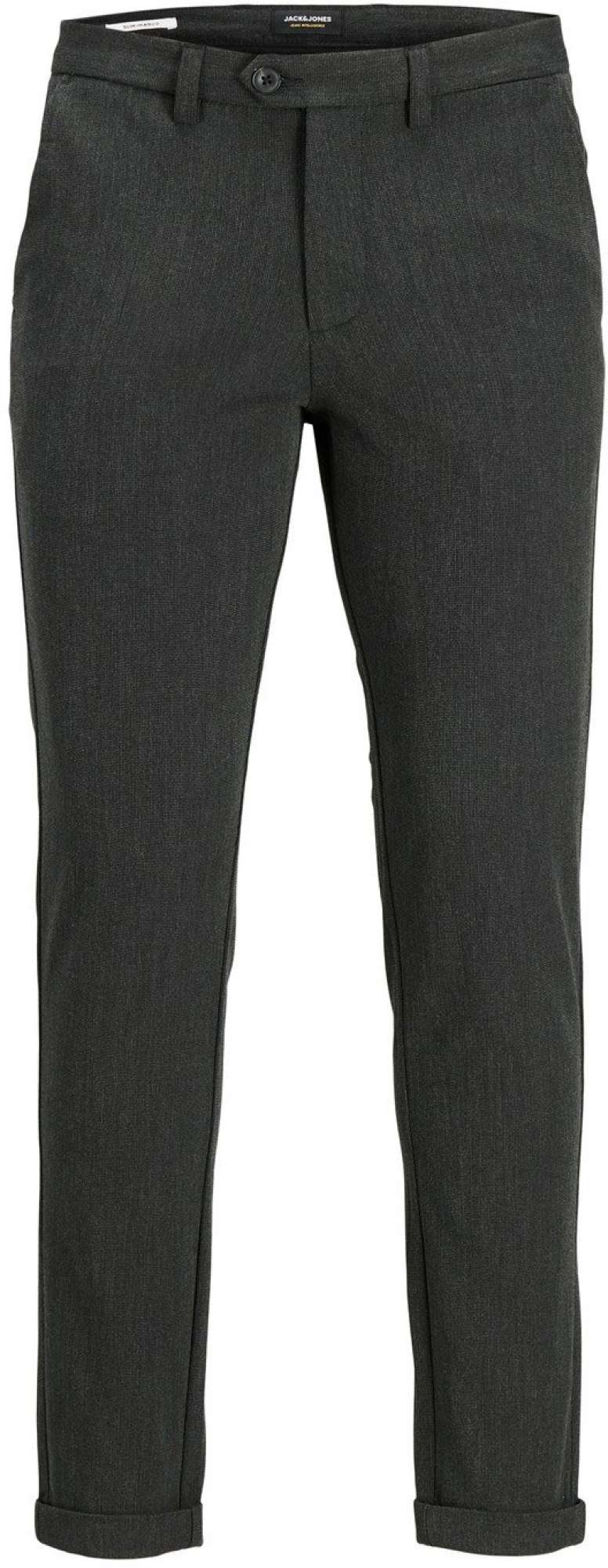 Marco Connor pantalon van Jack & Jones. Zwart met Grijs melange in structuur geweven strechy stof. Chino model met steekzakken, paspel achterzakken en ritssluiting. Marco heeft een smalle fit op het bovenbeen en de pijpjes lopen smal uit. Deze heren broek valt ietsje ruimer in de maat.