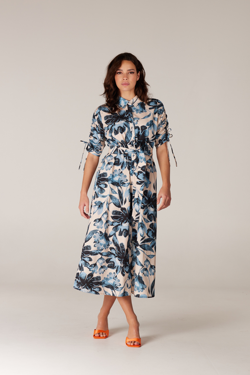 Leve de blousejurk! Dit katoenen exemplaar uit de collectie van Juffrouw Jansen komt met een stijlvol bloemmotief, een opstaande kraag en ophaalmouwen. Verder is het model voorzien van een knoopsluiting, zijsplitten en twee steekzakken. De afneembare tailleceintuur creëert een vrouwelijk silhouet. Meer informatie Samenstelling Kwalitieit – 100% Katoen Artikelnummer – DANDELI S23 Wasvoorschrift: Maximaal op fijne was 30º Pasvorm – A-lijn fit Deze maat valt – Normaal Ons model is 178 cm en draagt maat: S Specificaties Lengte – 125 cm in maat M Kleur – Sky Blue