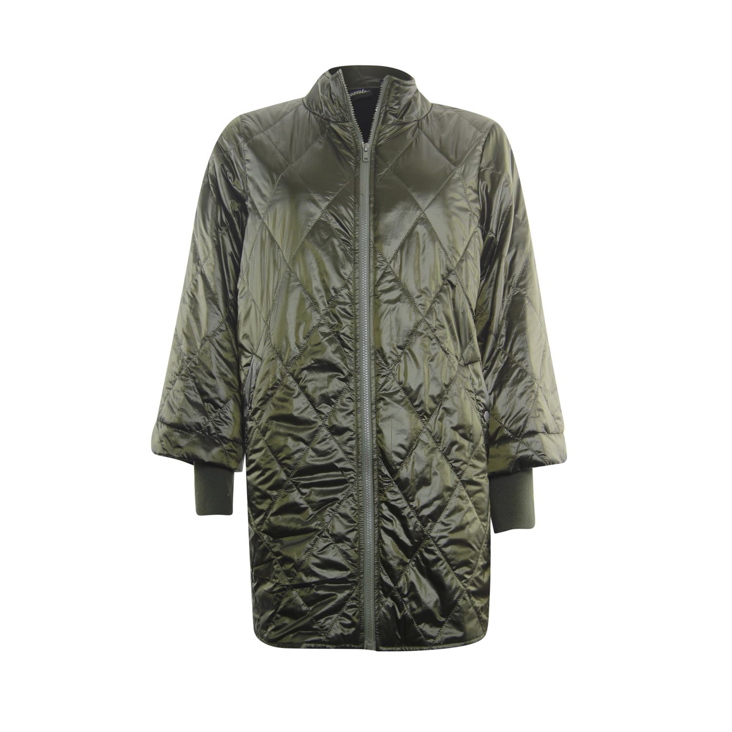 Gestepte jas in gecoate stof. Het jack heeft een ritssluiting voor en opstaande kraag. Een sportief detail zijn de lange ribboorden aan de mouw.