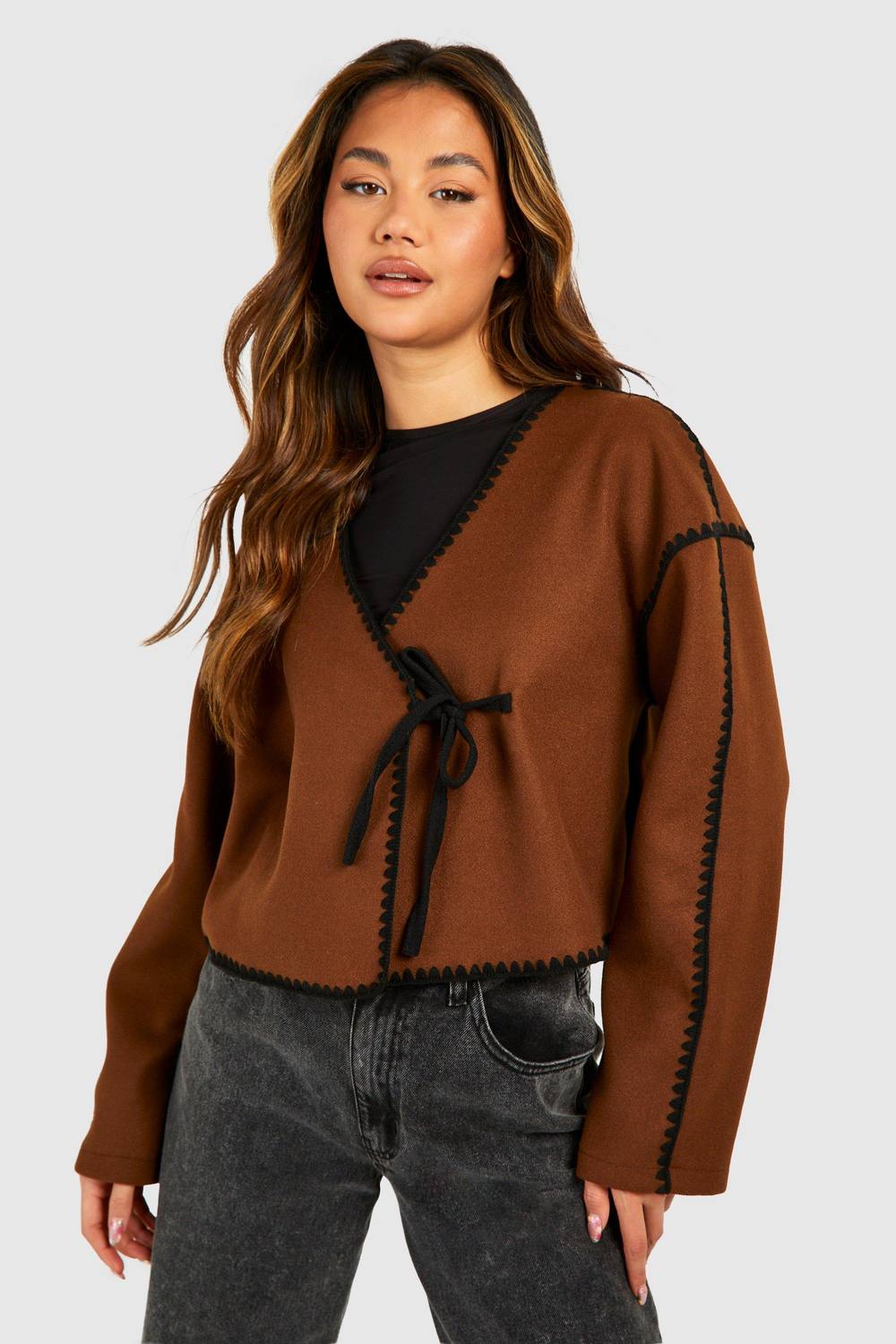 Jas Met Strikdetail, Dekensteek En Wol-Look, Chocolate