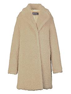Jas van WHITE LABEL. Van hoogwaardig, behaaglijk teddybont in een licht glanzende look. Modieus, warm en comfortabel in een casual model met verbrede schouders, reverskraag en drukknoopsluiting. 2 naadzakken en een binnenzak. Buitenkant, wattering en doorgestikte voering 100% polyester. Lengte ca. 90 cm. Deze jas is machinewasbaar. fijnwas tot 30°. chloorbleken niet mogelijk. niet strijken. chemische reiniging. drogen in de droger niet mogelijk. 40, 42, 44, 46, 48