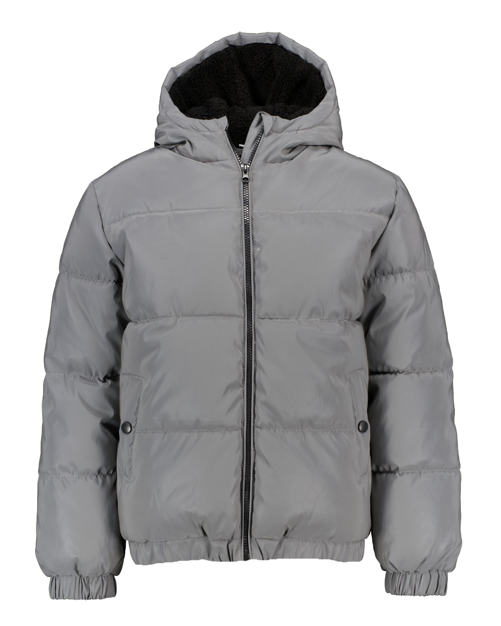 Deze zilverkleurige jongensjas is gemaakt van 100% polyester. De jas heeft een capuchon en een ritssluiting aan de voorkant. Dankzij het materiaal is de jas ideaal voor koelere dagen en biedt hij bescherming tegen de wind. De elastische mouwboorden zorgen voor een goede pasvorm en extra comfort.