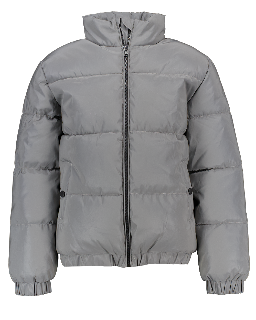 Deze zilverkleurige jas voor jongens en meisjes is gemaakt van 100% polyester. De jas heeft een gewatteerde look en is voorzien van een hoge kraag en een ritssluiting aan de voorkant. De mouwen zijn afgewerkt met elastische boorden voor extra comfort. Ideaal om je warm te houden tijdens koudere dagen en makkelijk aan en uit te trekken.