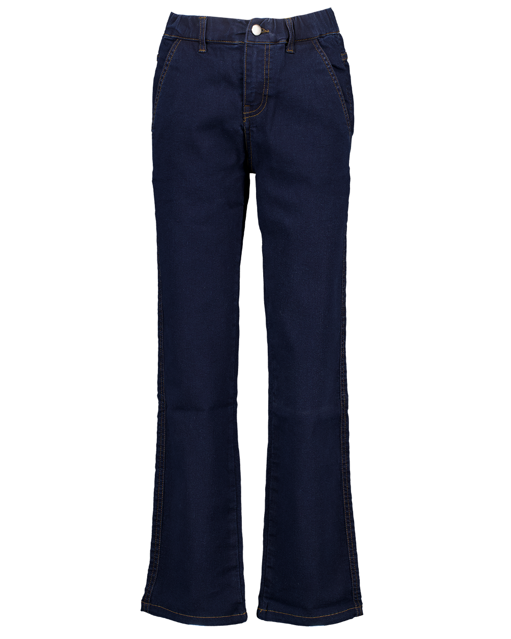 Deze donkerblauwe jeans voor jongens en meisjes is gemaakt van stevig denim met een sluiting met knoop en rits, zodat je de broek makkelijk aantrekt. De voor- en achterzakken geven ruimte aan kleine spullen. De pijpen lopen licht uit, waardoor je kind vrij kan bewegen tijdens het spelen. De stof biedt goede steun bij dagelijks gebruik, zodat de broek comfortabel blijft zitten.