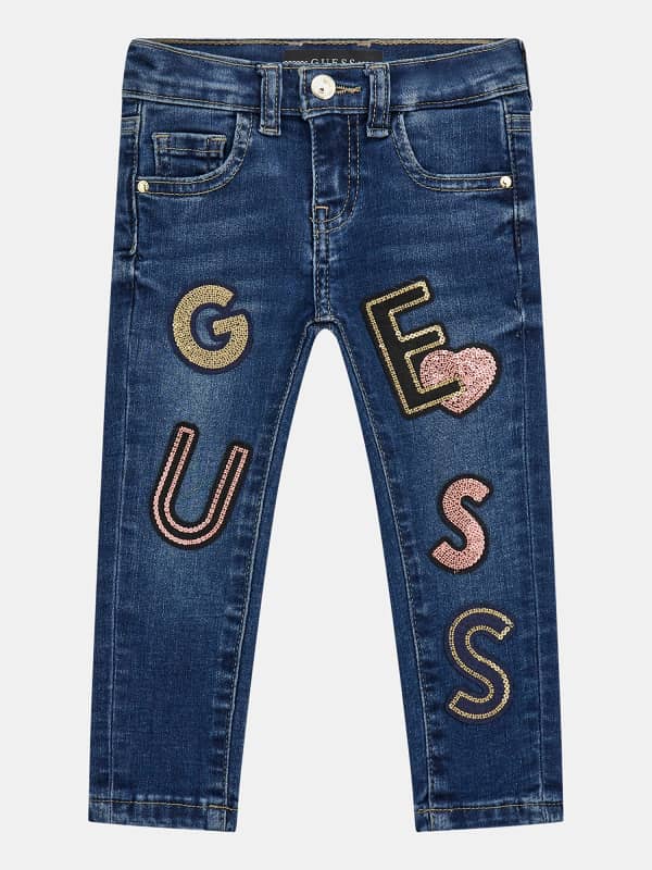 Jeans van gemengde katoen.Regular met 5 zakken.Middelhoge taille, strakke broekspijp.Skinny fit.Knoop- en ritssluiting.STOF: Stretch denim.BEHANDELING: Medium wassing.DETAILS MATERIAAL: Pailletten.DETAILS: Logopatches. MATEN:Binnenbeenlengte: Maat 2: 32,2 cm / 12,68 inch. – Maat 3: 37 cm / 14,57 inch.Maat 4: 41,8 cm / 16,46 inch. – Maat 5: 46,6 cm / 18,35 inch.Maat 6: 51,4 cm / 20,24 inch.Valt normaal op maat.
