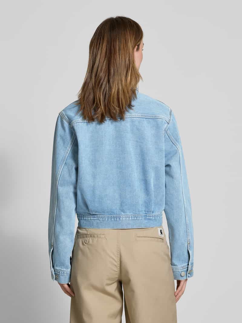 Jeansjack van Carhartt Work In Progress voor dames;Puur biologisch katoen;Los model;Model ‘Arca’;Kentkraag;Knoopsluiting;Steekzakken;Labeldetail;Ruglengte bij maat S: 49 cm;Schouderbreedte bij maat S: 41 cm;Borstomvang bij maat S: 51 cm;Mouwlengte bij maat S: 60 cm