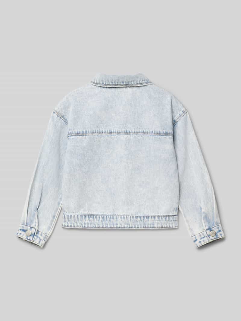Jeansjack van NAME IT voor kinderen;Puur katoen;Los model;Model ‘MILA’;Platte kraag;Doorknoopsluiting;Borstzakken met klep;Ruglengte bij maat 116: 39 cm;Schouderbreedte bij maat 116: 39 cm;Mouwlengte bij maat 116: 36 cm