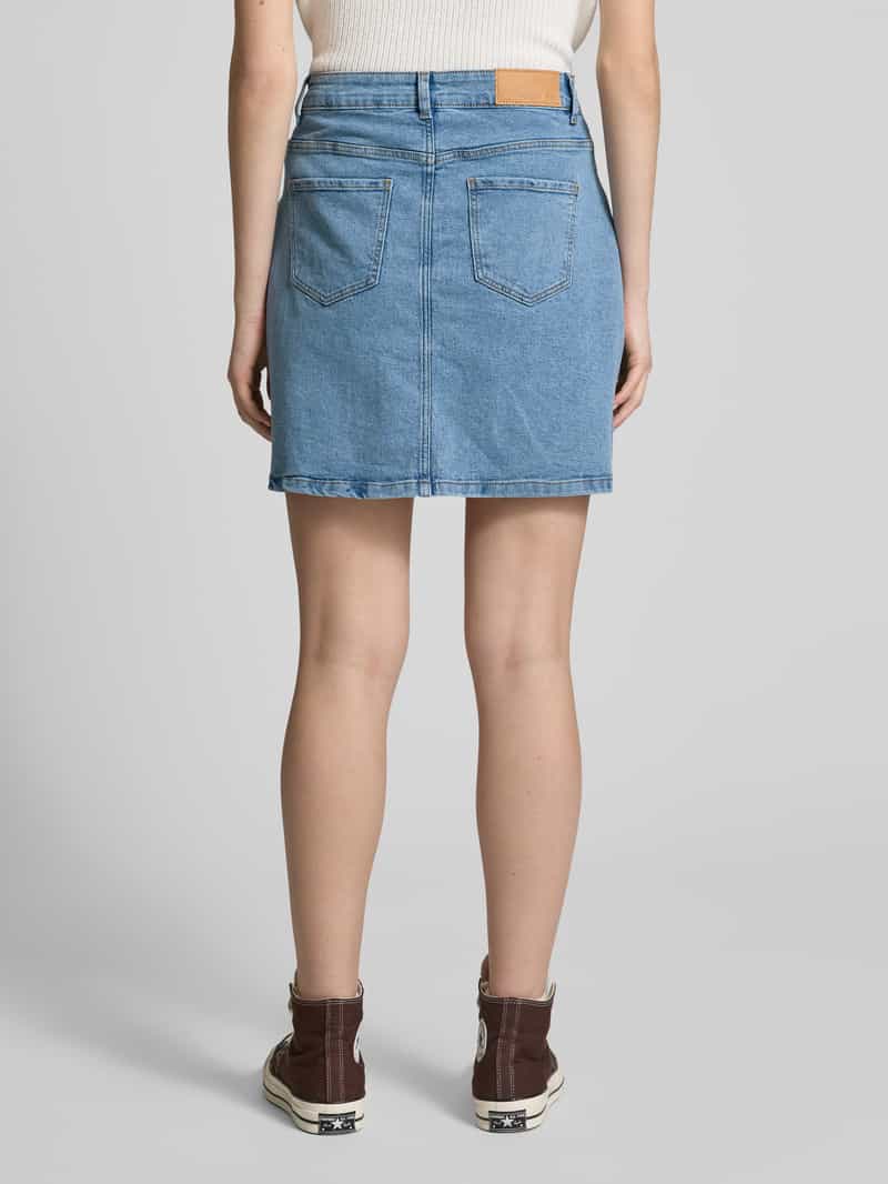 Jeansrok van Noisy May;Elastische katoenmix met viscose;A-lijn;Minirok;Model ‘RONNIE’;Riemlussen;5-pocketdesign;Doorknoopsluiting;Bandwijdte bij maat S: 39 cm;Totale lengte bij maat S: 46 cm