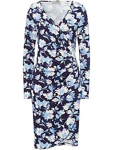 Jersey jurk van UTA RAASCH in getailleerd comfortmodel met lange mouwen. De V-hals in wikkel-look accentueert het decolleté op elegante wijze. De print all-over maakt elke jurk uniek, omdat de dessinering bij ieder model iets kan variëren. De halve-maaninzet met plooi in de taille zorgt voor een elegant silhouet. De afgeronde zoom maakt het design casual. Met deze jurk kunt u uw persoonlijke stijl op elegante manier tot uiting brengen. 92% viscose, 8% elastan. LENZING™ ECOVERO™-viscose is een geregenereerde cellulosevezel. Lengte ca. 100 cm. Deze jersey jurk is machinewasbaar. fijnwas tot 30°. chloorbleken niet mogelijk. koud strijken. chemische reiniging. drogen in de droger niet mogelijk. 38, 40, 42, 44, 46, 48